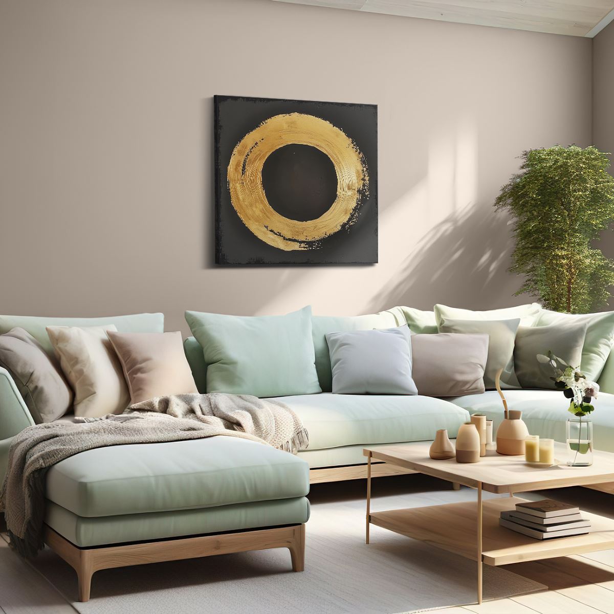 Schilderij Gouden Cirkel op een Zwarte Achtergrond