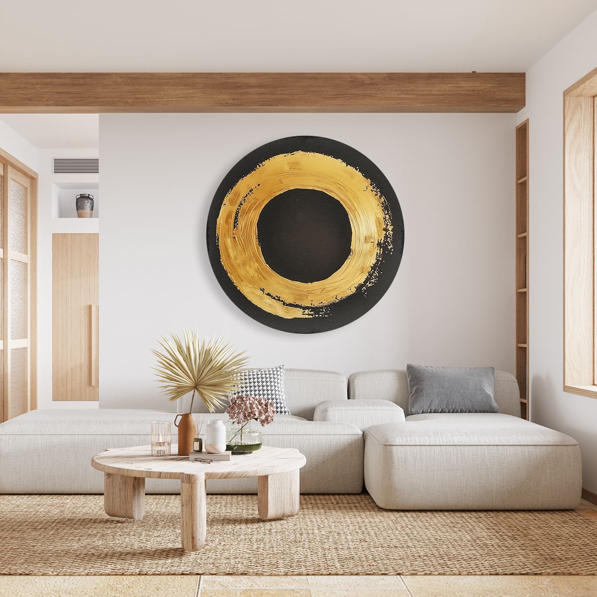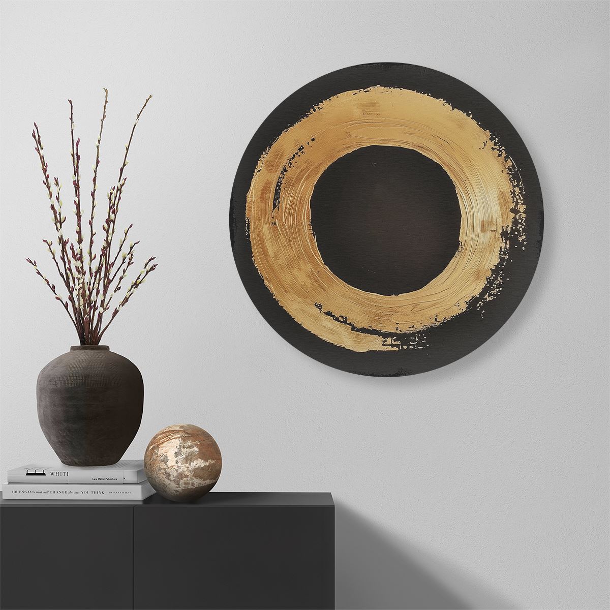 Wandcirkel Gouden Cirkel op een Zwarte Achtergrond