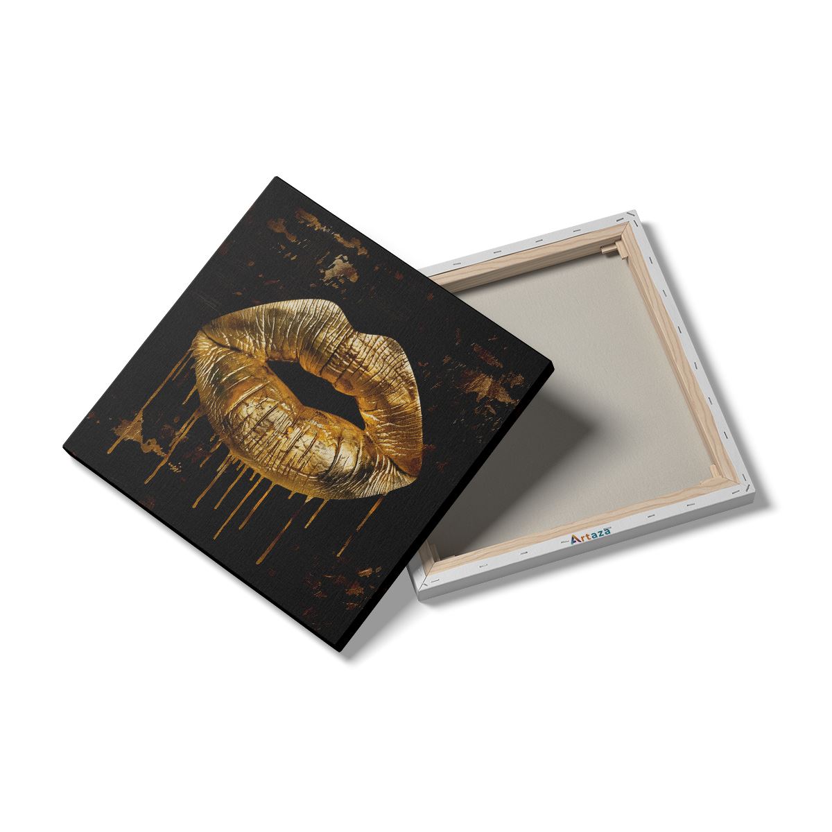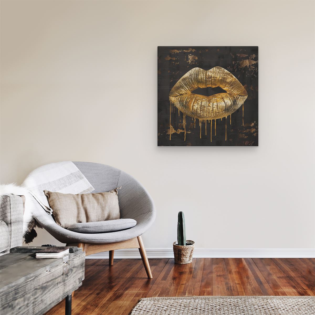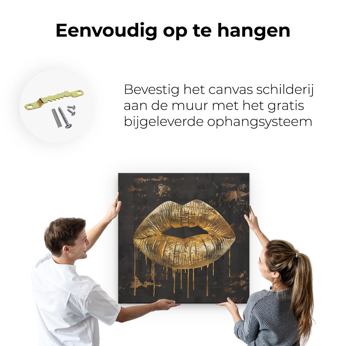 Schilderij Gouden Lippen op een Zwarte Achtergrond