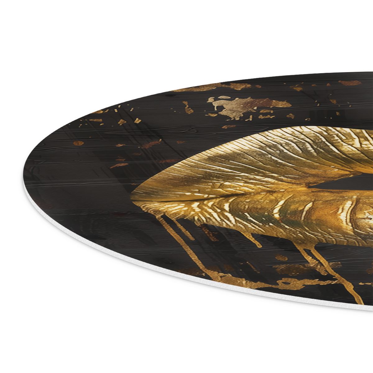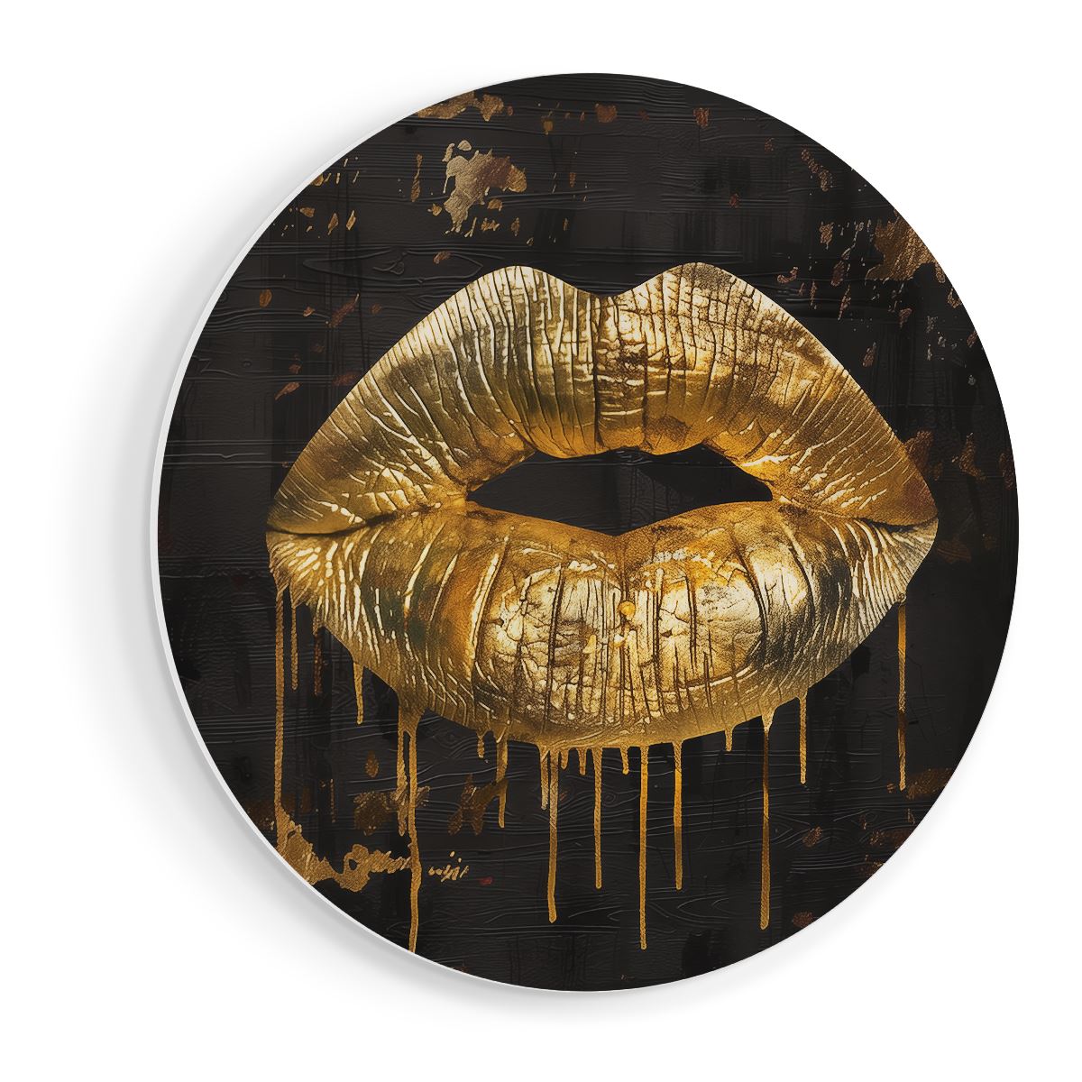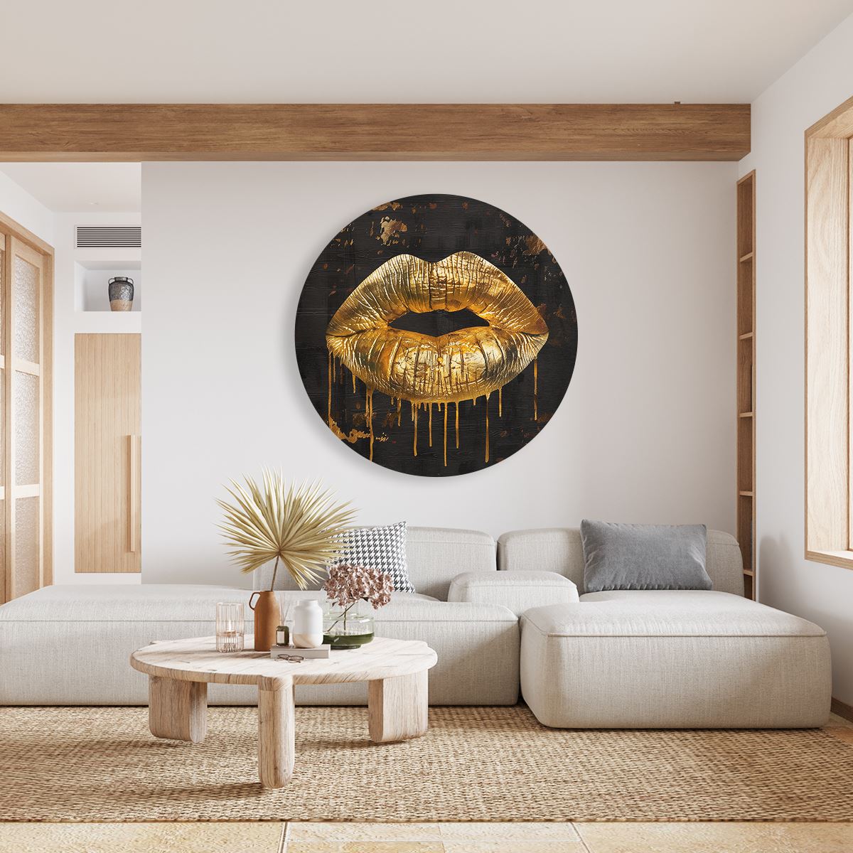 Wandcirkel Gouden Lippen op een Zwarte Achtergrond