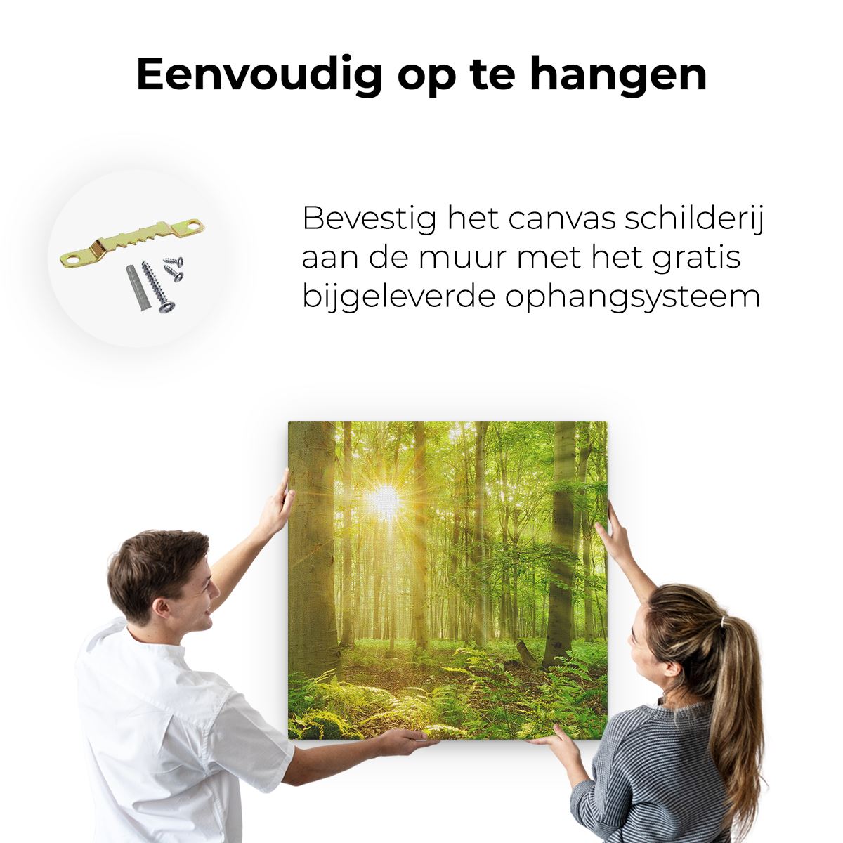 Bij aankoop ontvang je een meegeleverd ophangsysteem, zodat je op een simpele en snelle wijze het schilderij boven de bank of bed kan monteren.