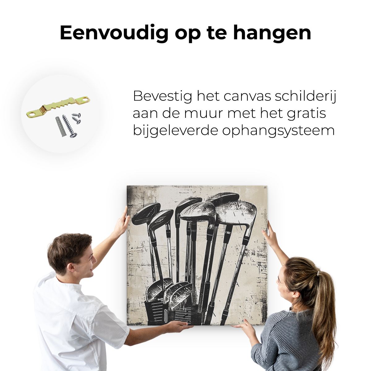 Bij aankoop ontvang je een meegeleverd ophangsysteem, zodat je op een simpele en snelle wijze het schilderij boven de bank of bed kan monteren.