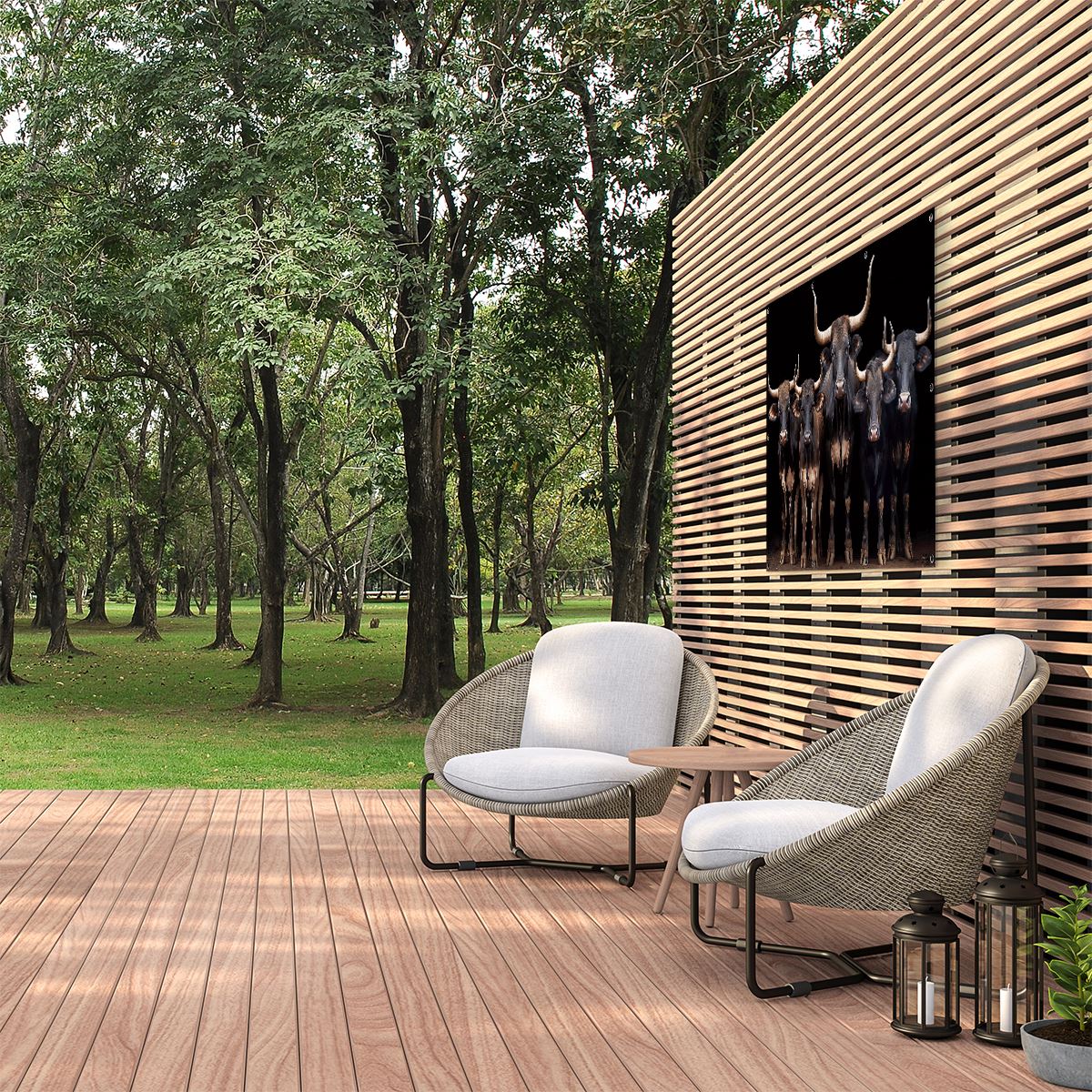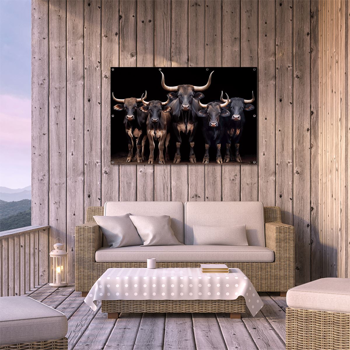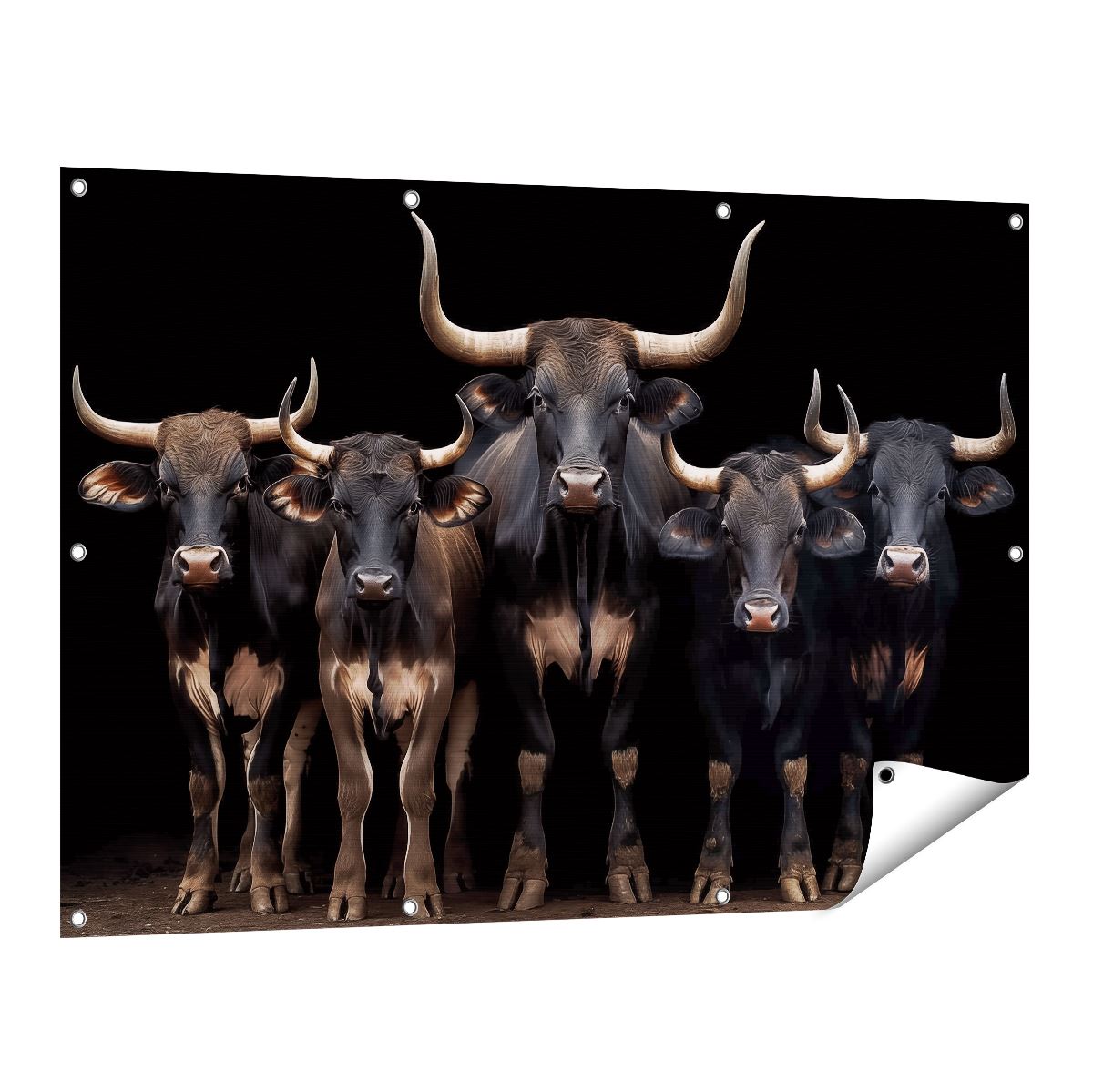 Tuinposter Groep Stieren die Zich voor een Donkere Achtergrond Bevinden