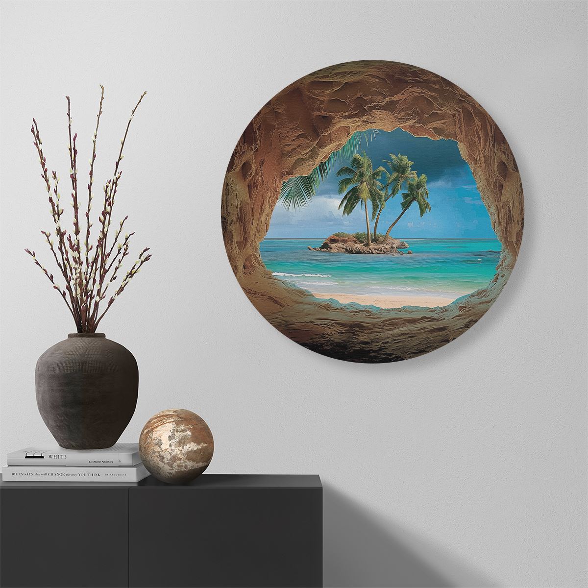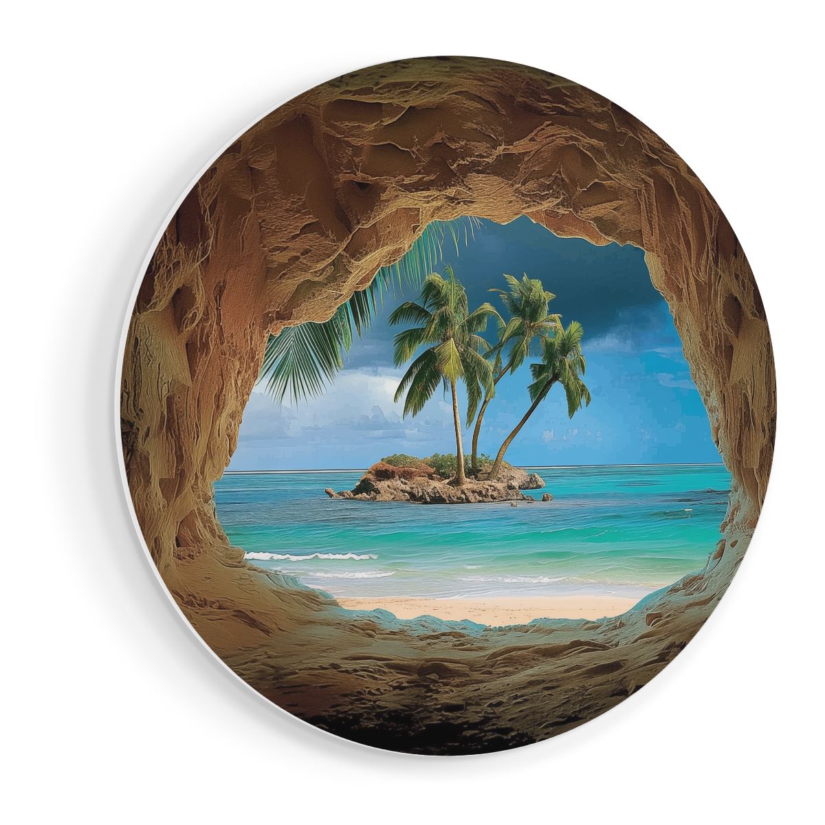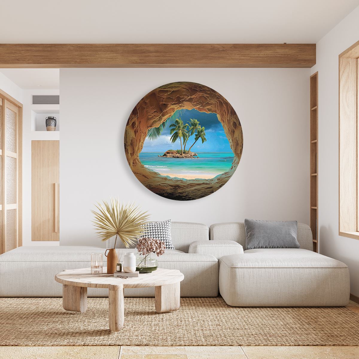 Wandcirkel Grot met Uitzicht op de Oceaan en Palmbomen