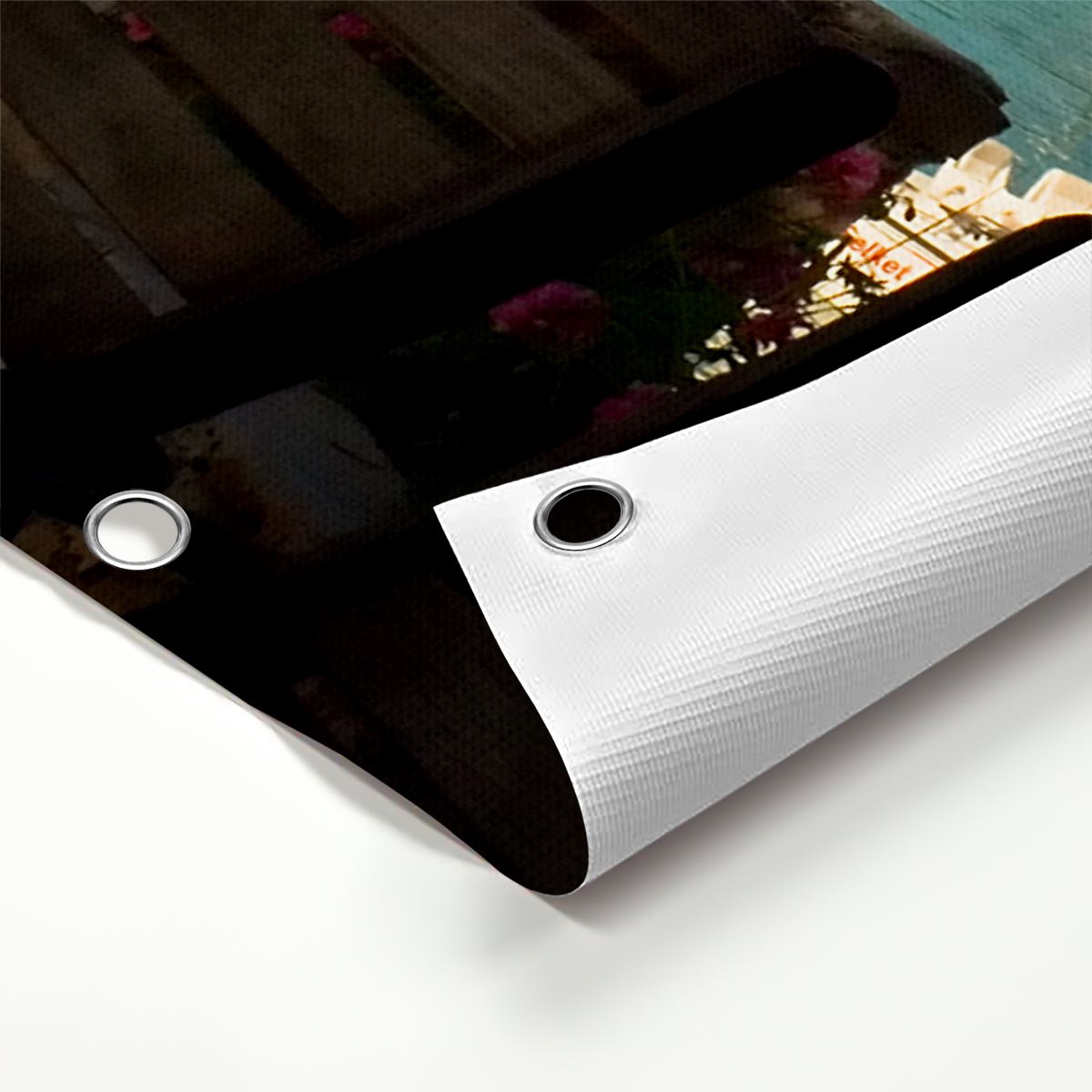 Door de ringen moet je een tiewrap bevestigen, waarmee je de tuinposter aan schroeven aan bijvoorbeeld de schutting kunt bevestigen.