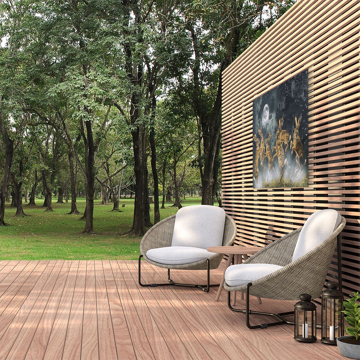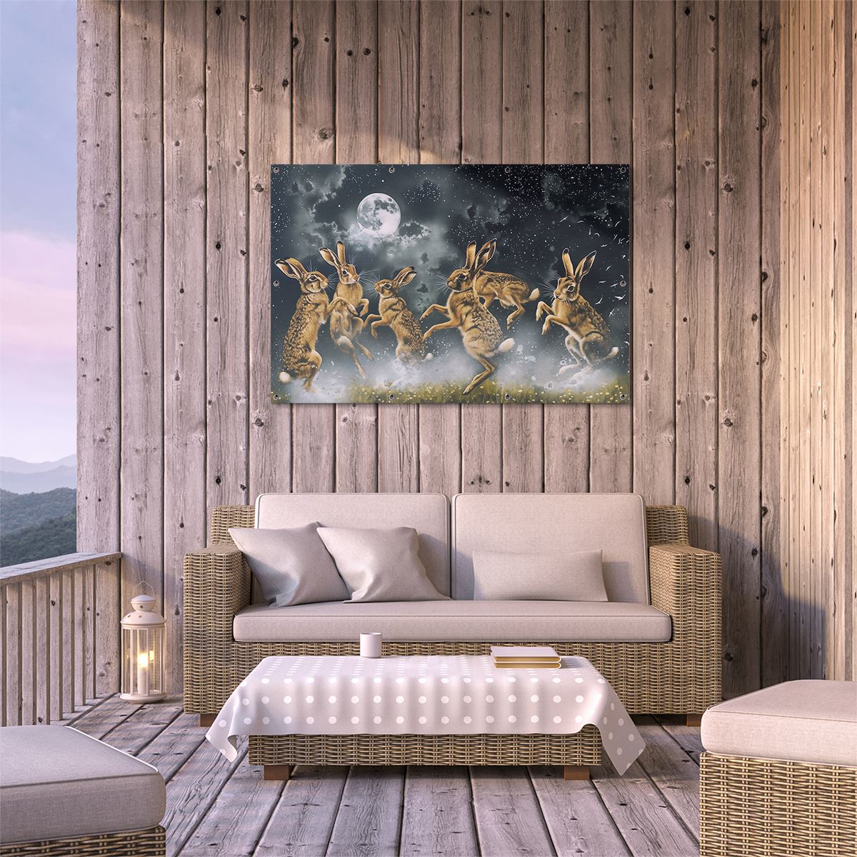 Tuinposter Hazen Springen in het Maanlicht