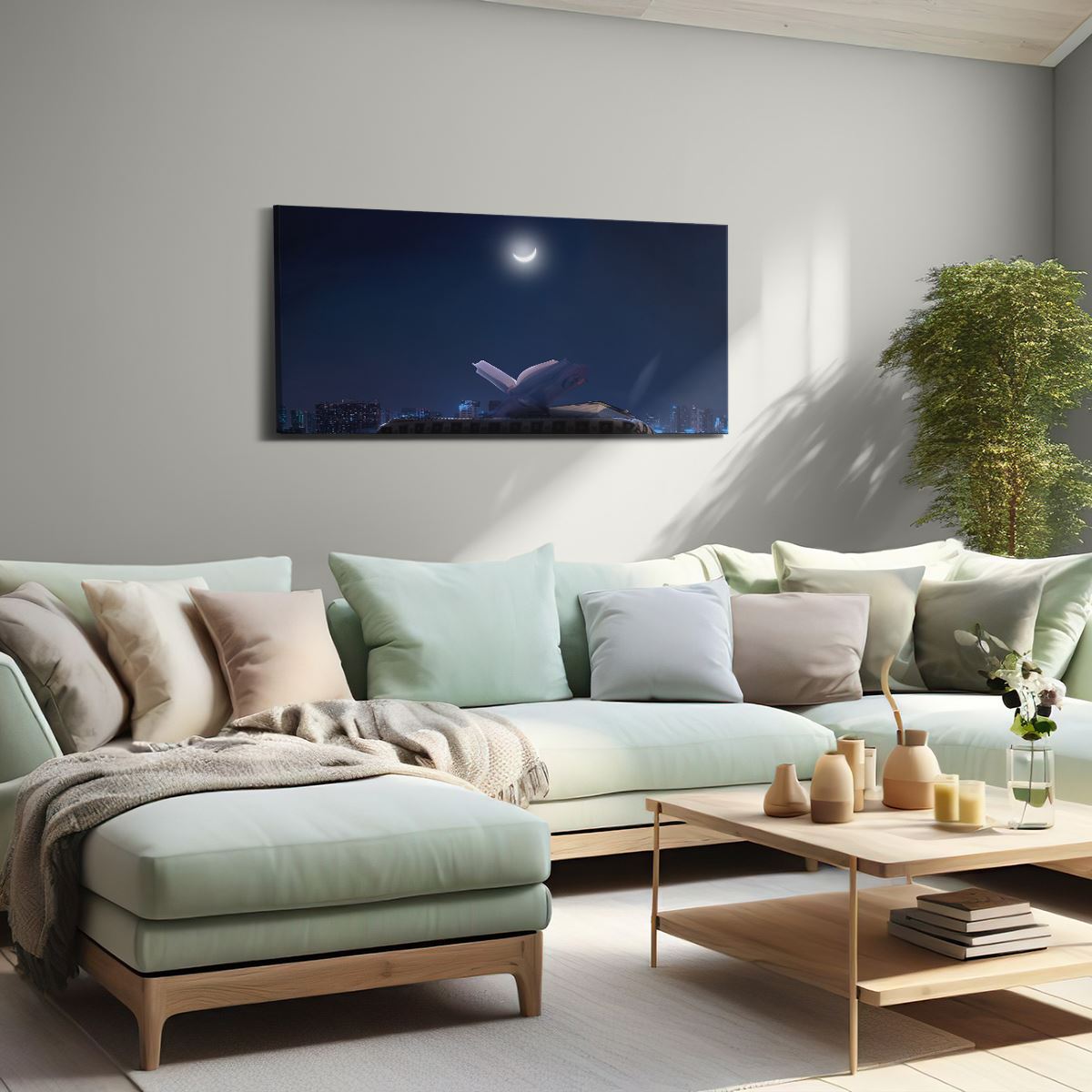 Schilderij Heilige Boek Koran Bij Een Halve Maan