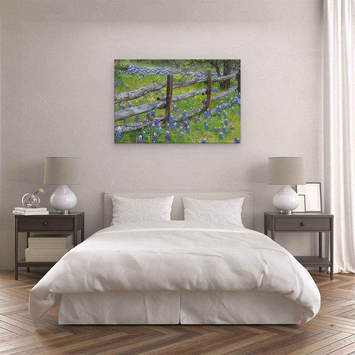 Schilderij Hek met Bluebonnets op de Achtergrond