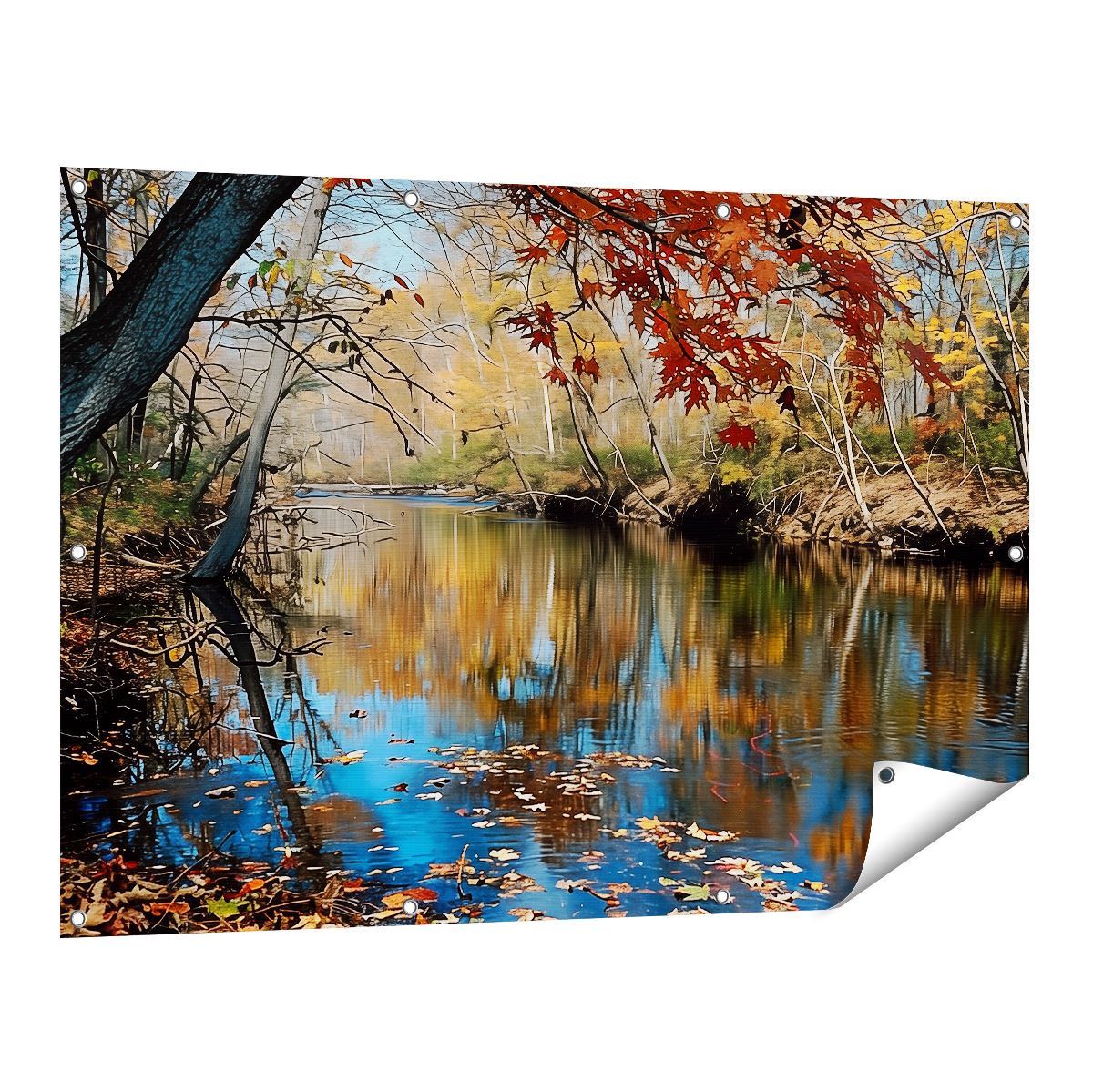 Tuinposter Herfstbladeren Weerspiegeld in een Rivier