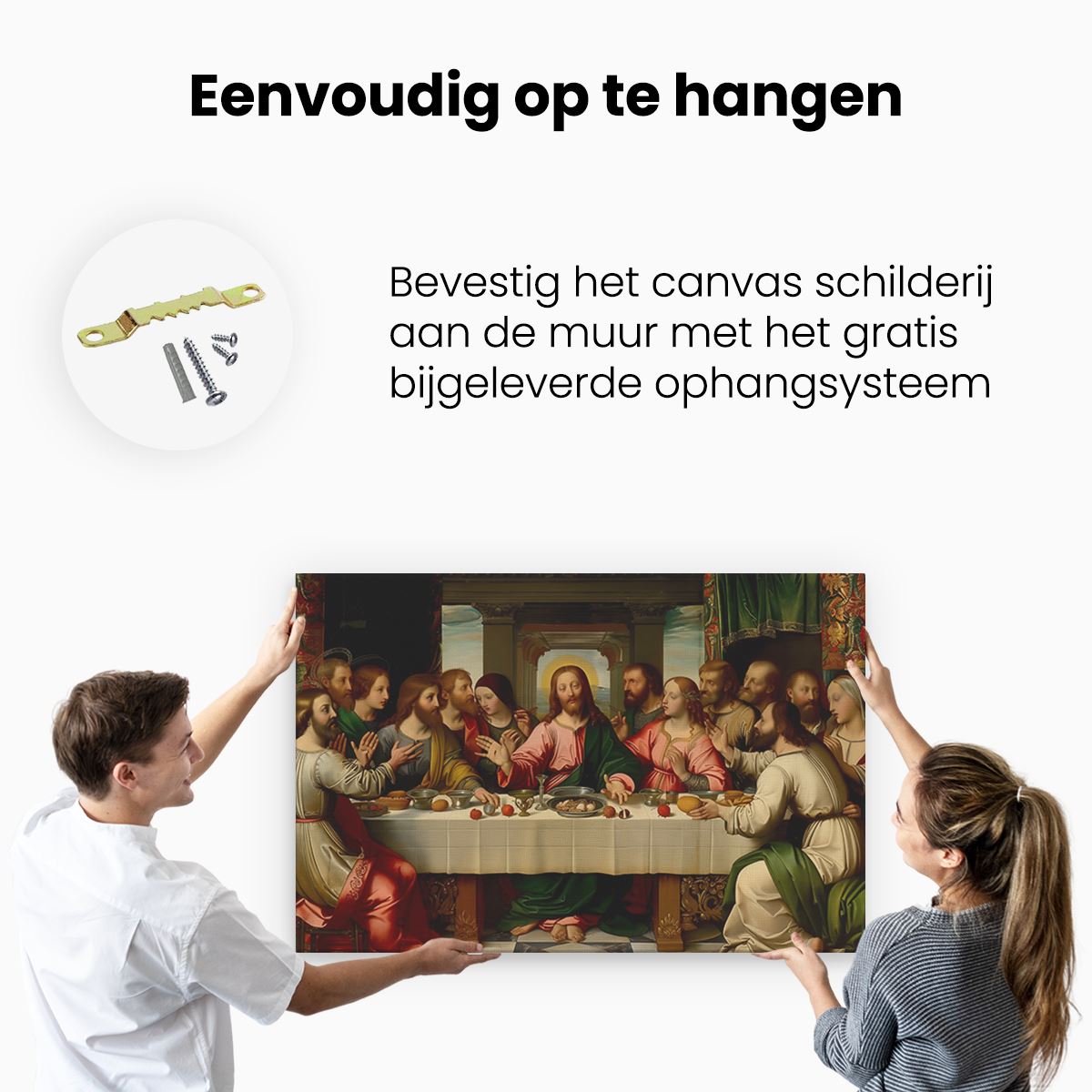 Bij aankoop ontvang je een meegeleverd ophangsysteem, zodat je op een simpele en snelle wijze het schilderij boven de bank of bed kan monteren.