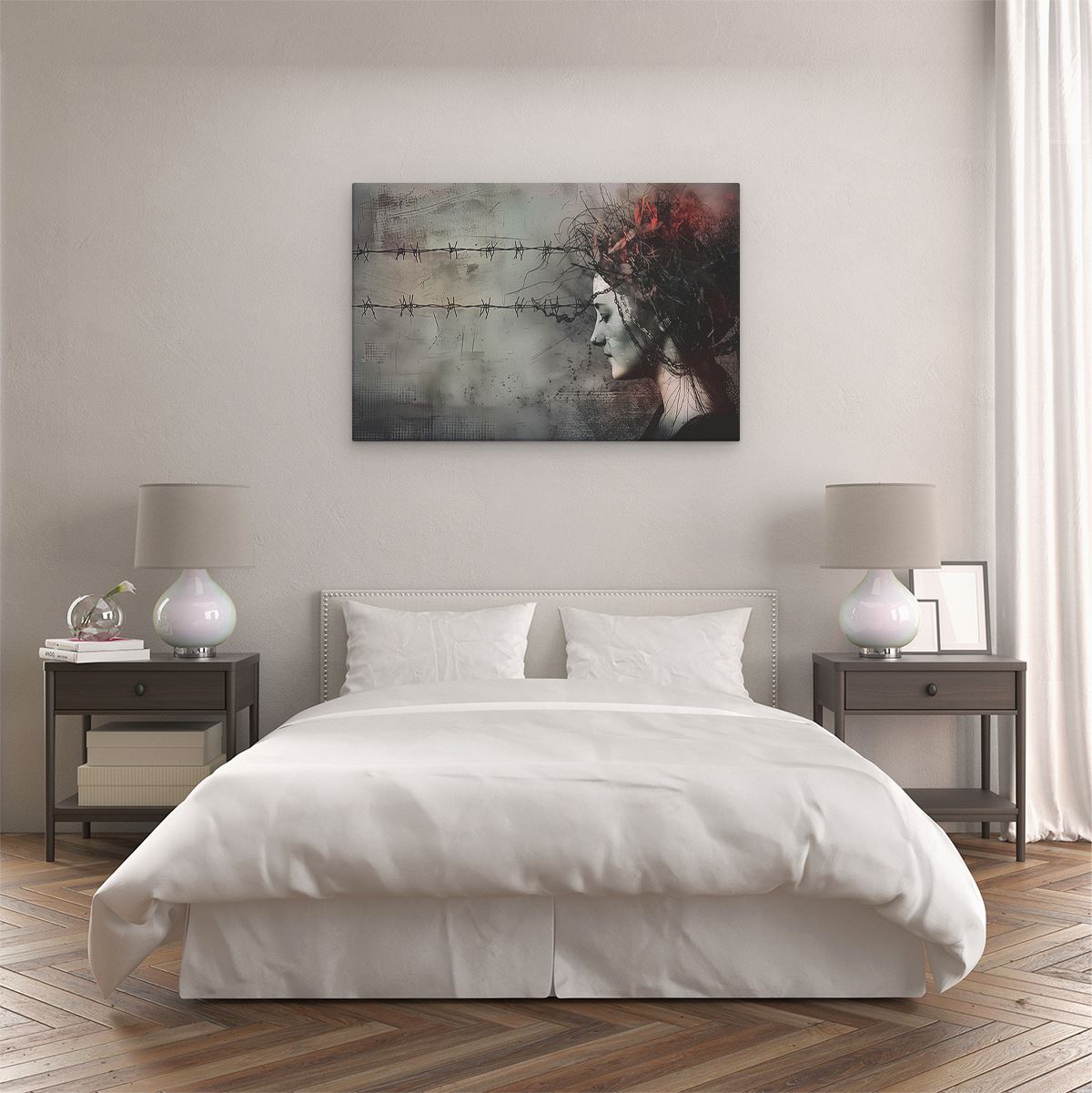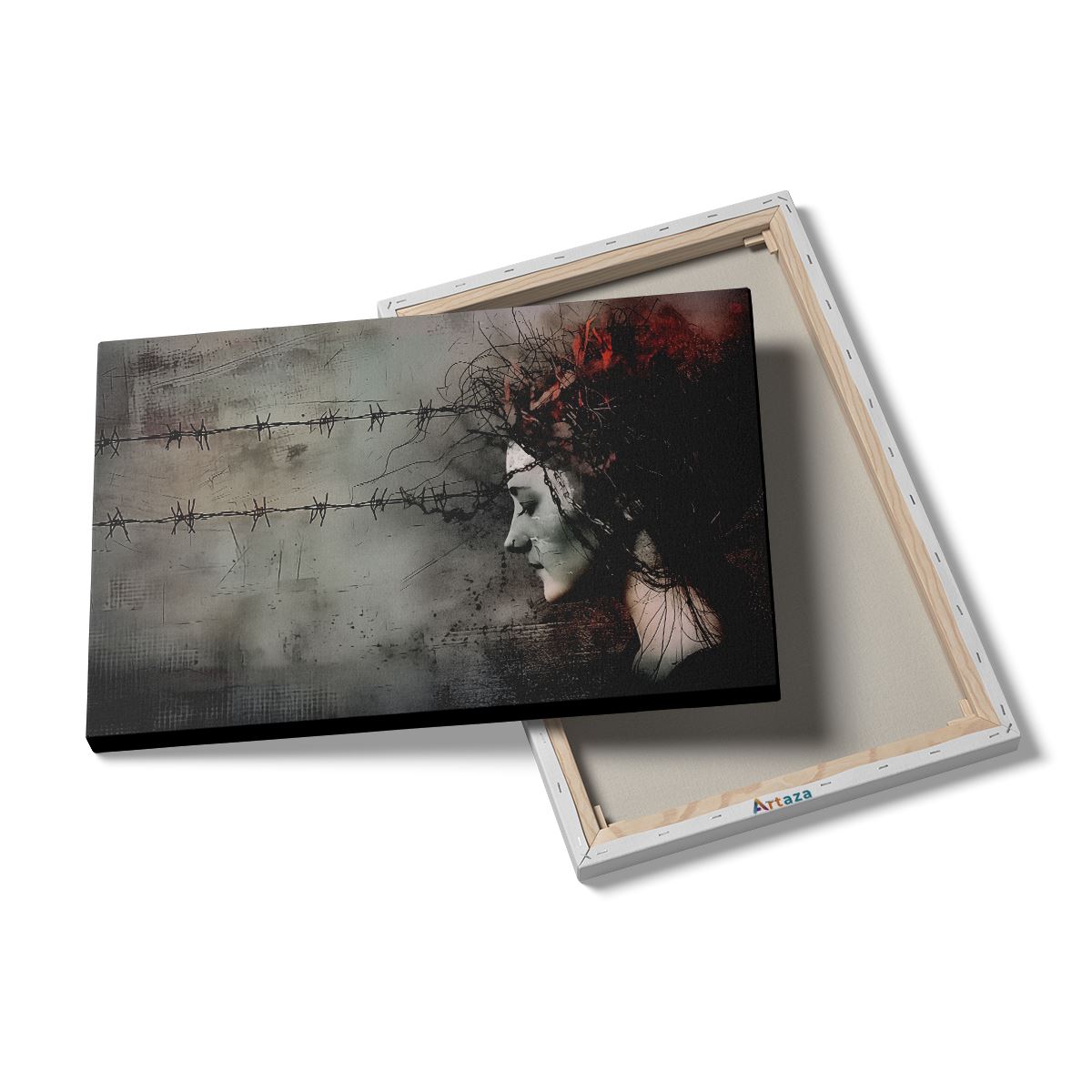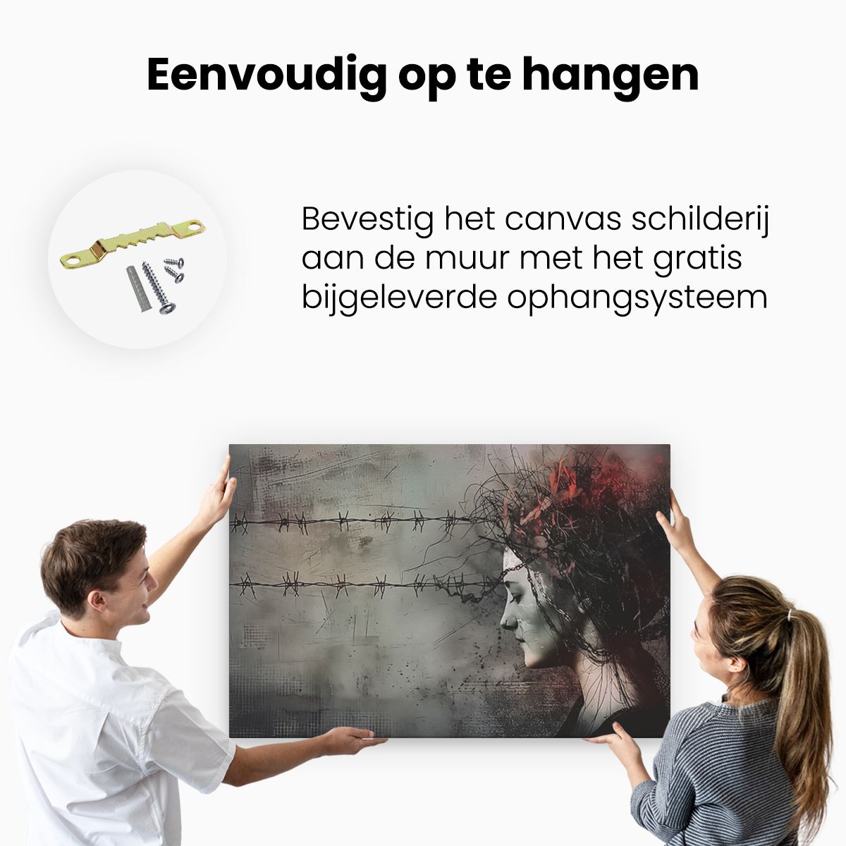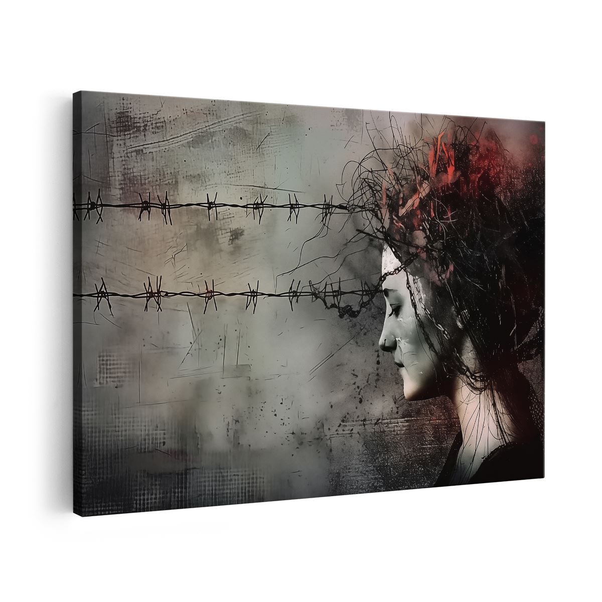 Schilderij Hoofd van de Vrouw Achter Prikkeldraad