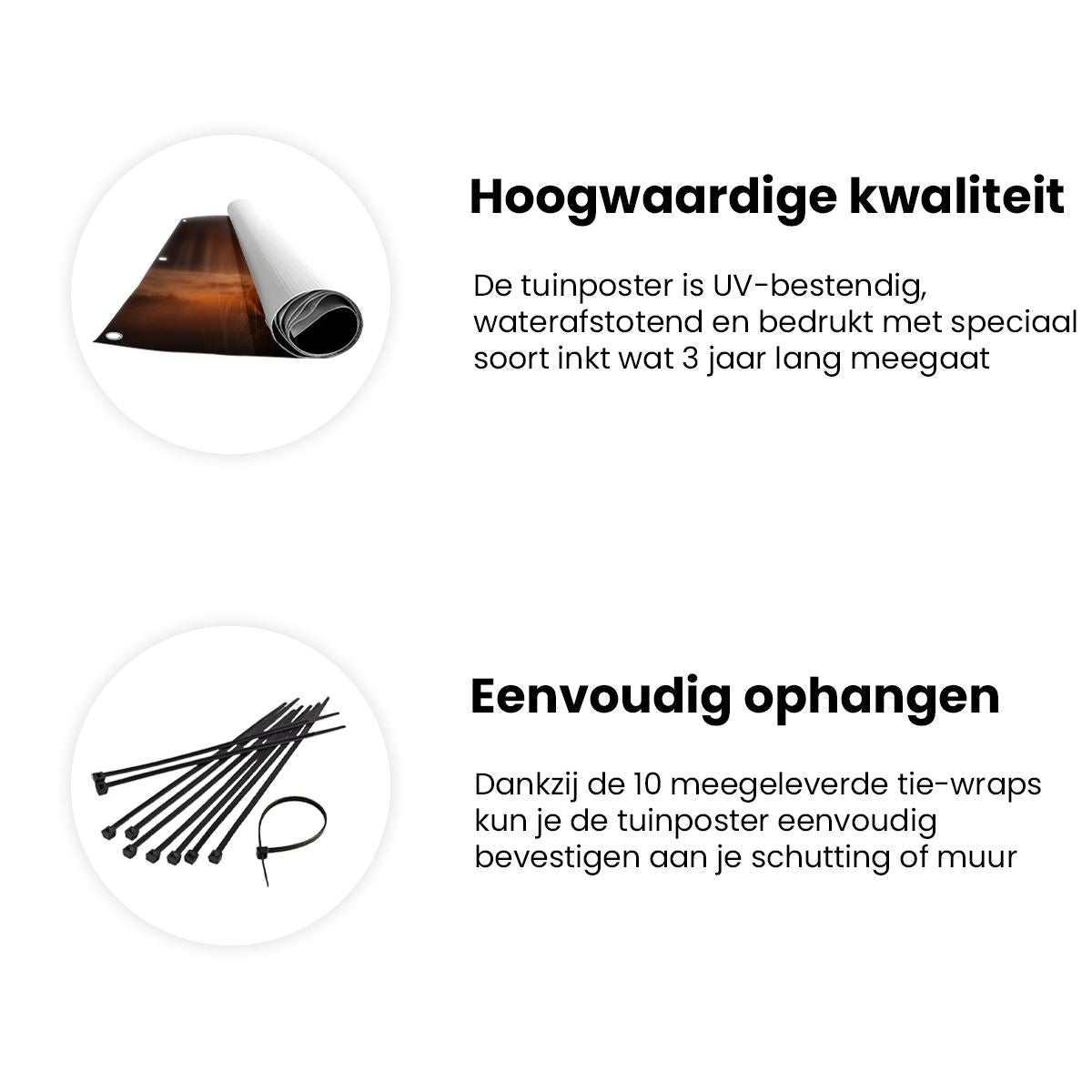 Bij aankoop ontvang je een meegeleverd ophangsysteem, zodat je op een simpele en snelle wijze de tuinposter kan ophangen.