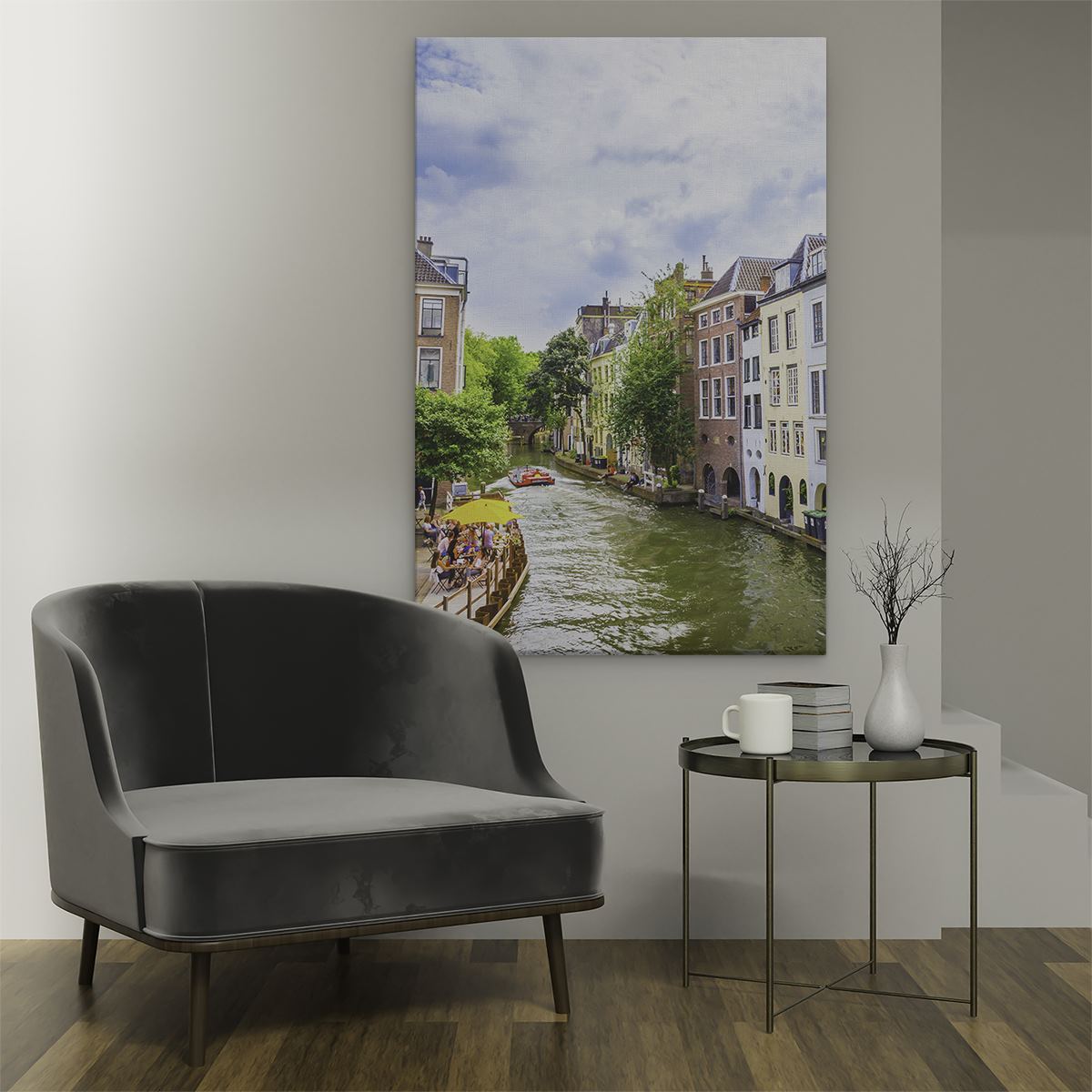 Schilderij Huizen Aan De Oudegracht In Utrecht