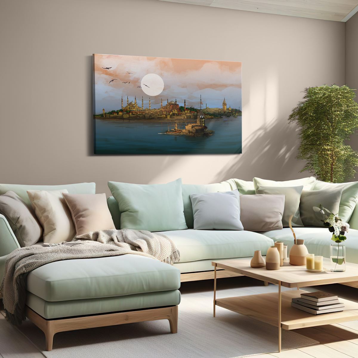 Schilderij Illustratie Van De Maiden's Tower In Istanbul