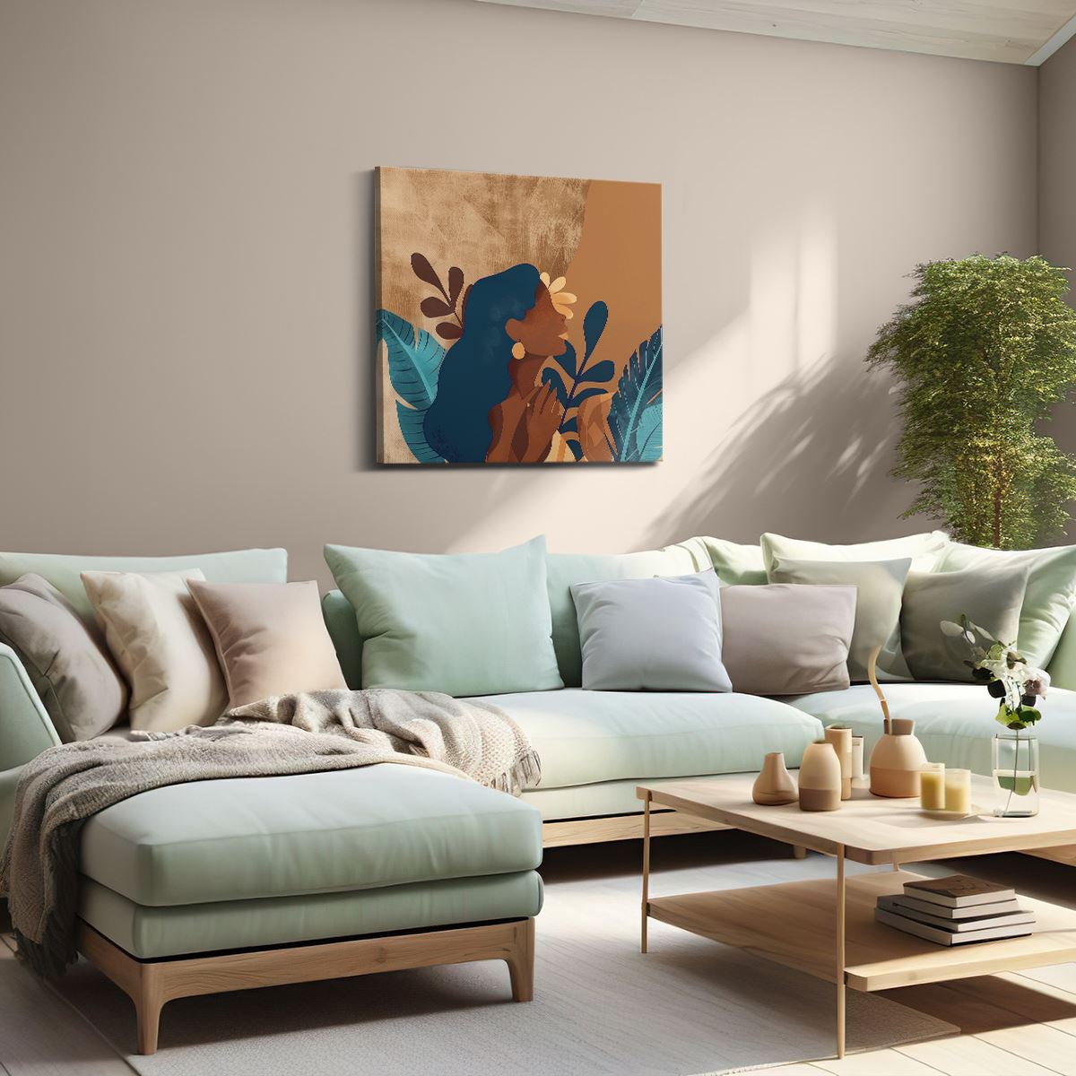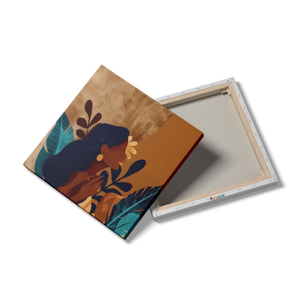 Schilderij Illustratie van een Vrouw met een Bloem in haar Haar