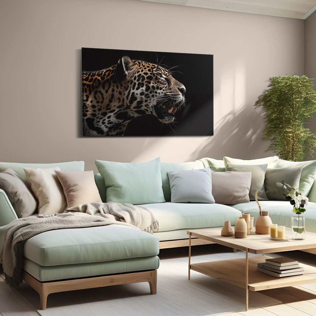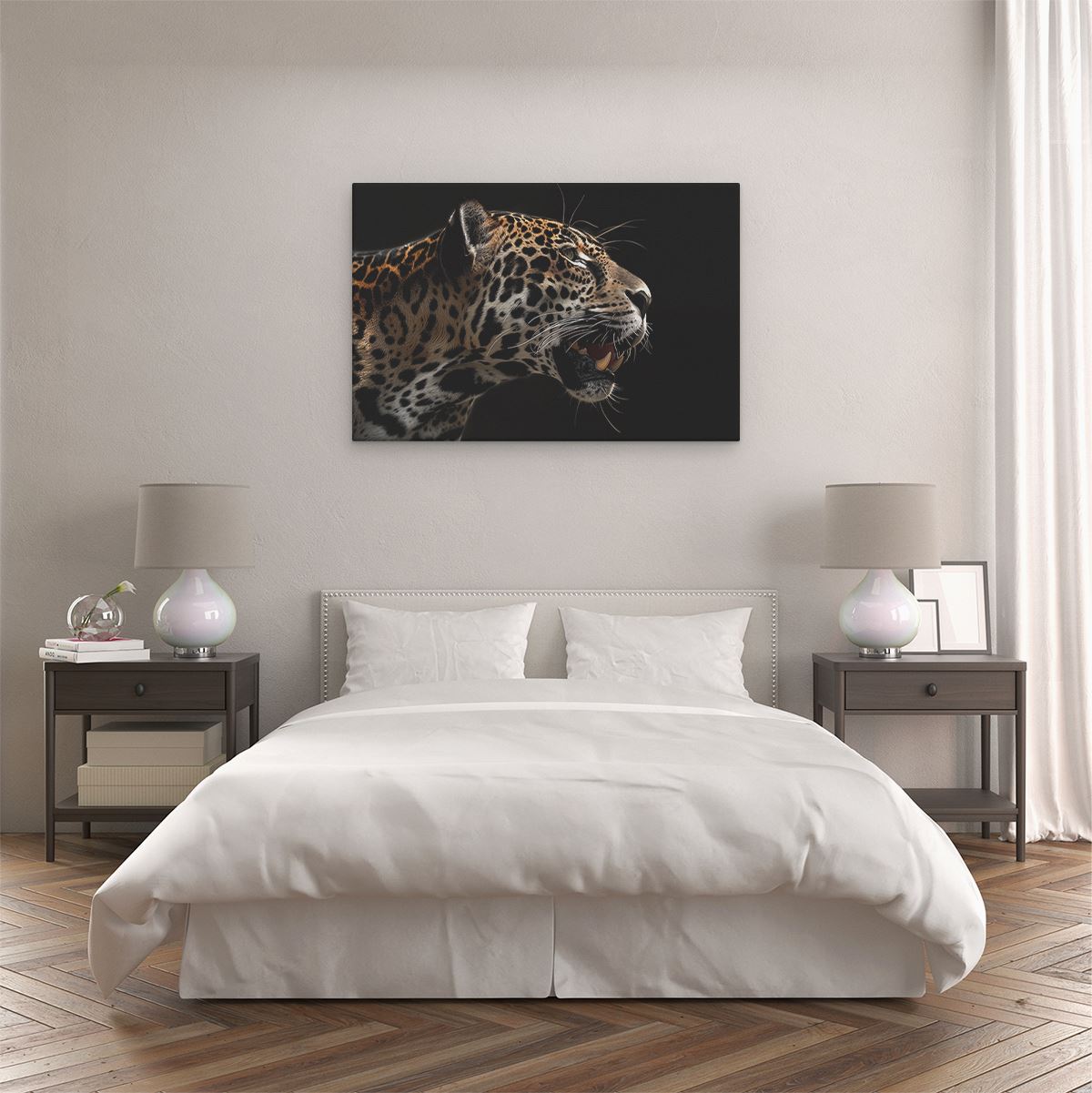 Schilderij Jaguar op een Zwarte Achtergrond