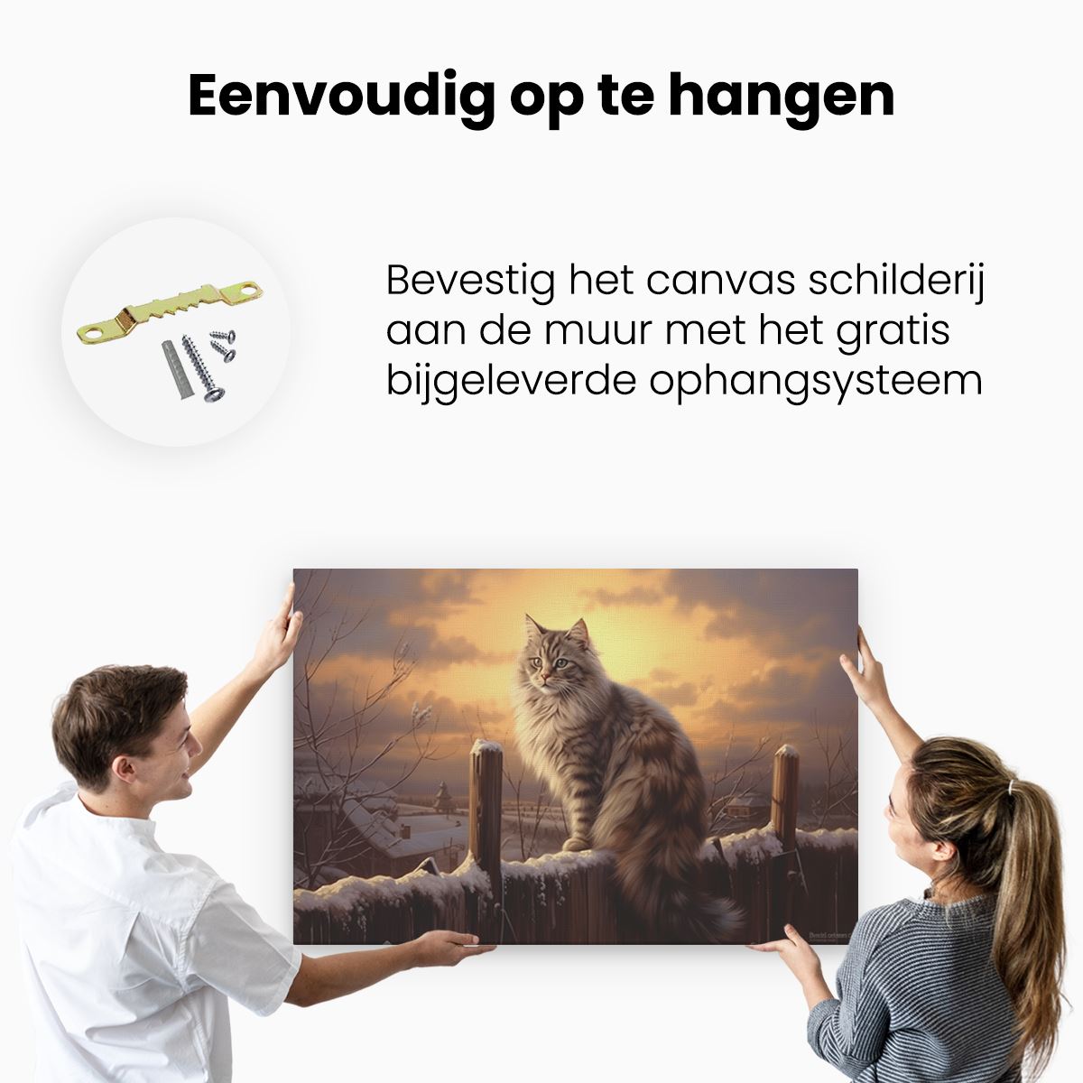 Bij aankoop ontvang je een meegeleverd ophangsysteem, zodat je op een simpele en snelle wijze het schilderij boven de bank of bed kan monteren.