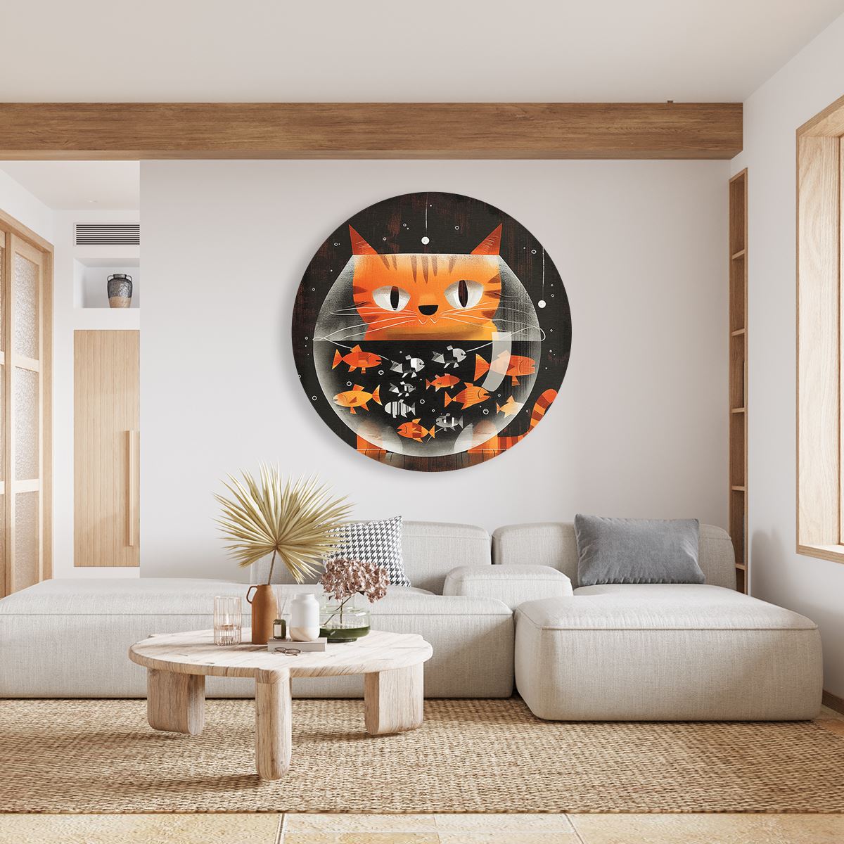Je kunt het beste de cirkel plat op de vloer leggen en vanuit daar bepalen wat recht is. Op het hoogste punt plak je verticaal een plakbandje, en dit laat je dan een stukje over de achterkant heen lopen. Dan draai je de wandcirkel om en plak je de ophangplaat op ¼ deel van de bovenkant, recht onder het plakbandje.