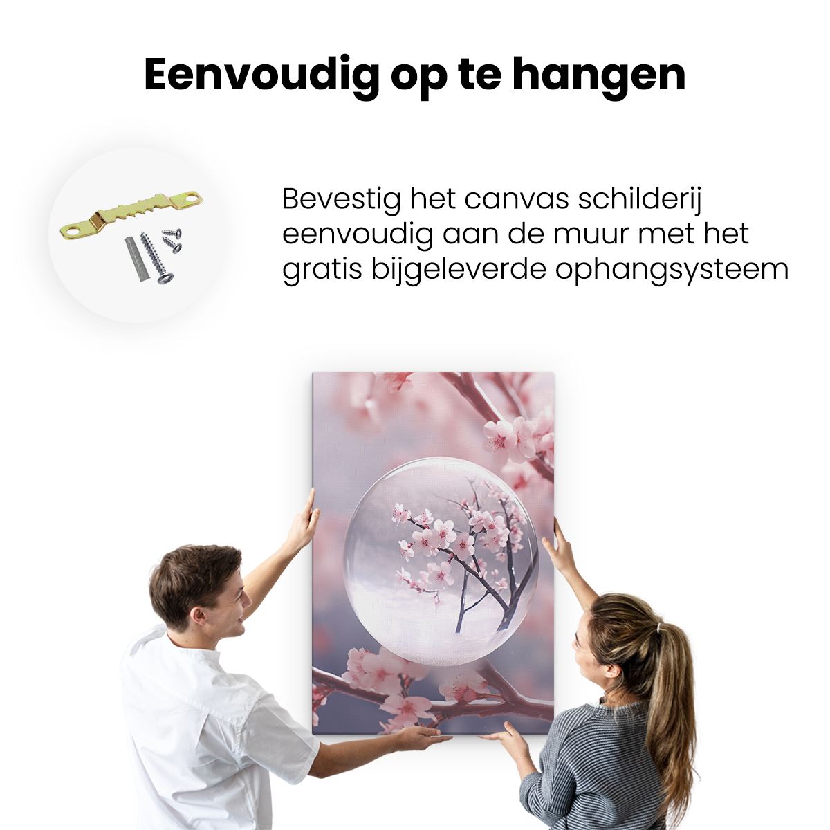 Bij aankoop ontvang je een meegeleverd ophangsysteem, zodat je op een simpele en snelle wijze het schilderij boven de bank of bed kan monteren.