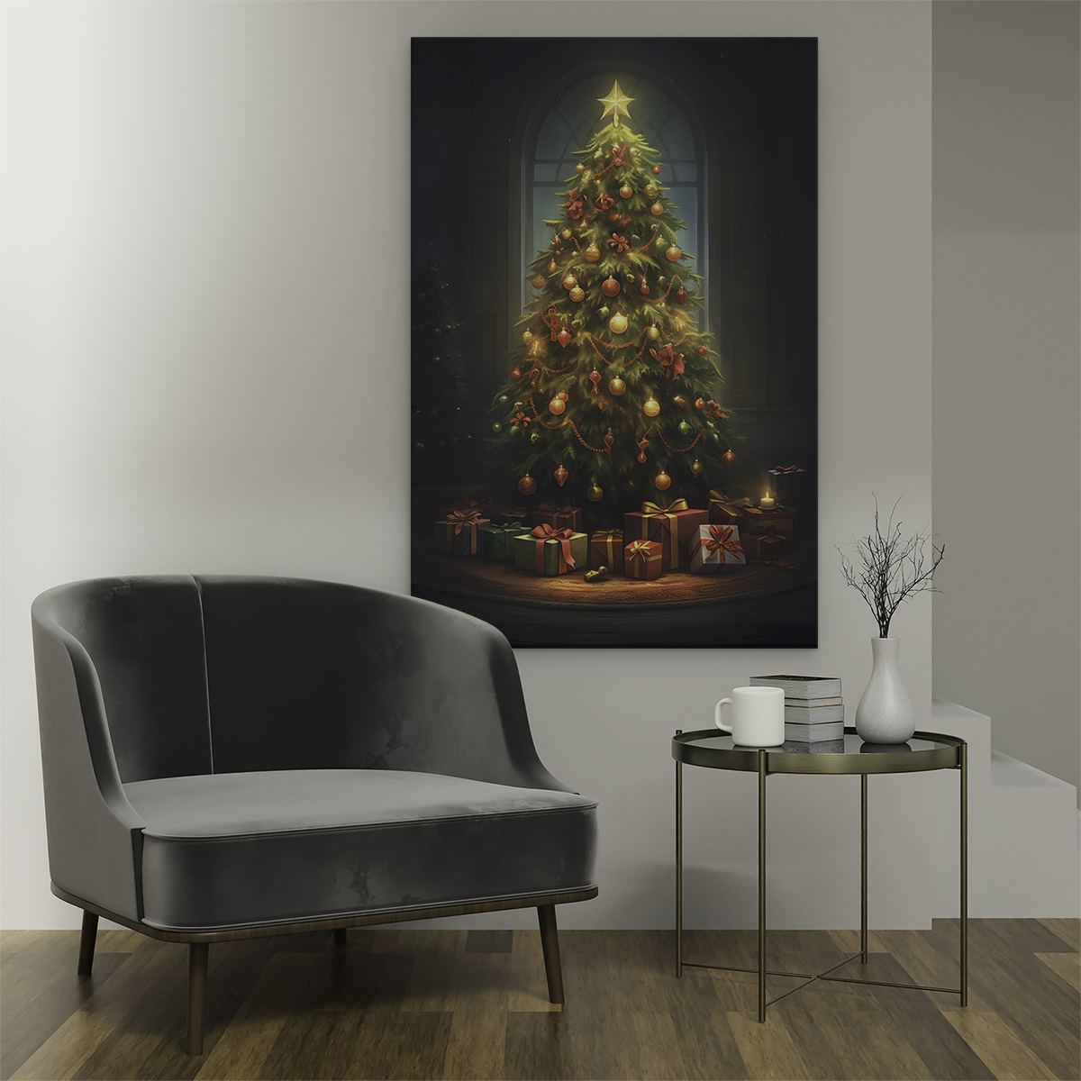 Schilderij Kerstboom met Versieringen - Decoratie - Kerst