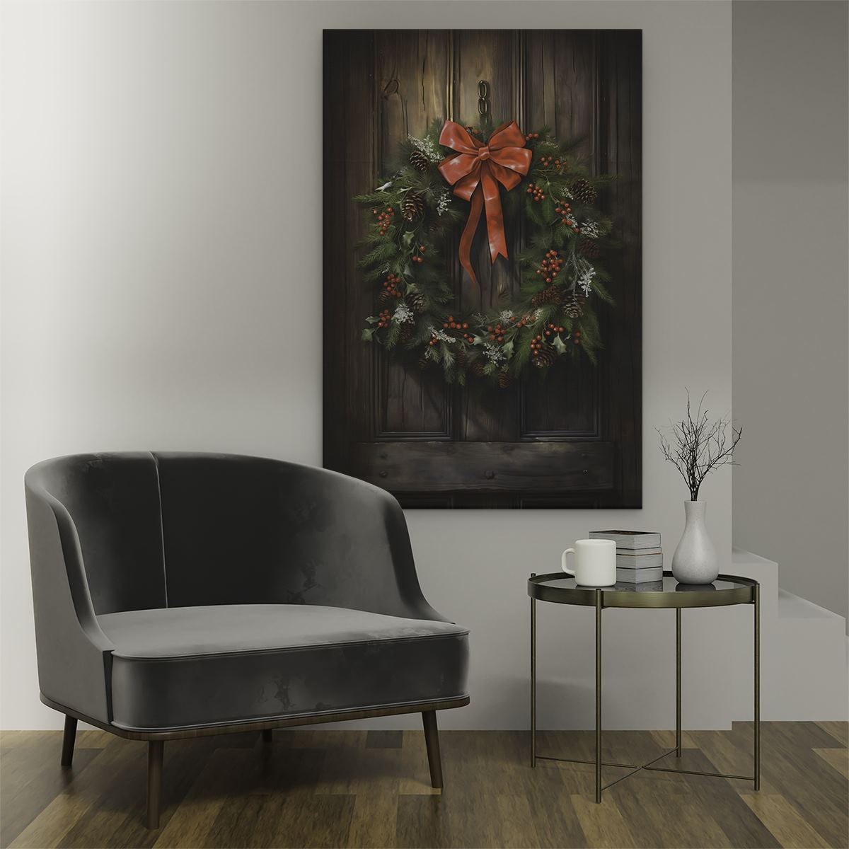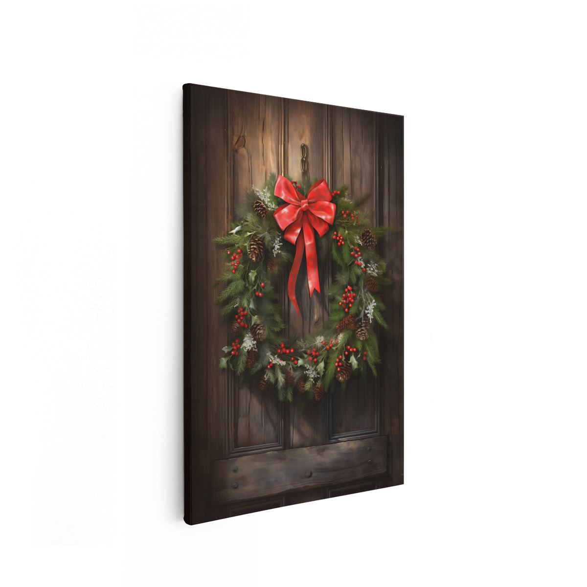 Schilderij Kerstkrans op een Houten Muur