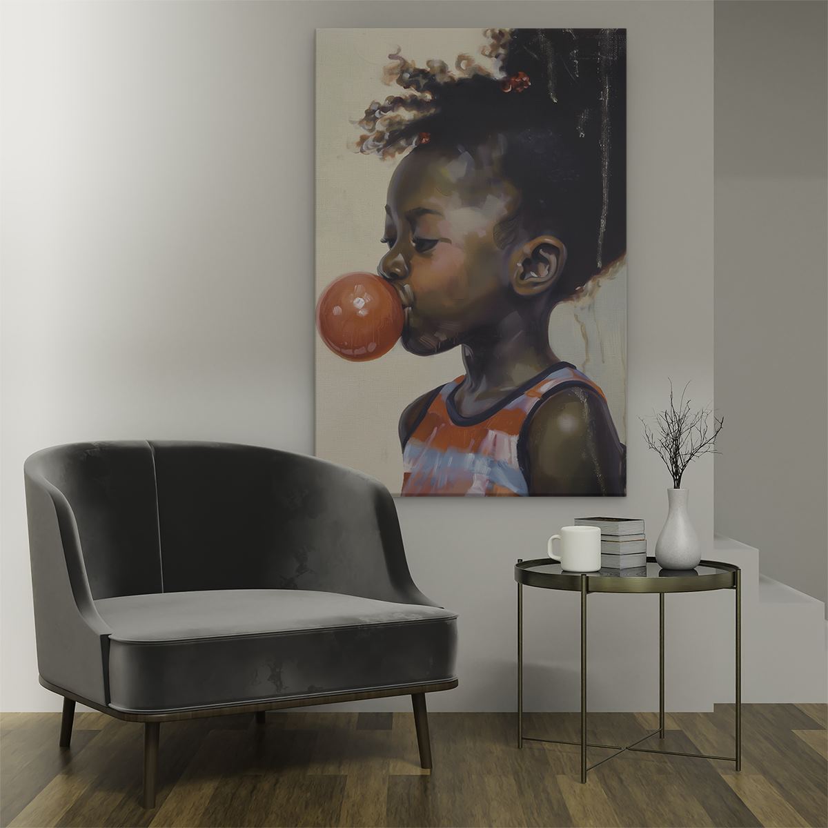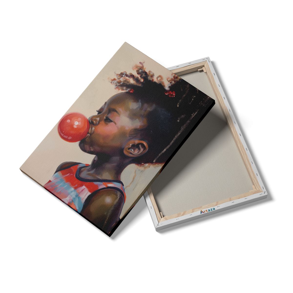 Schilderij Klein Meisje Blaast een Kauwgom