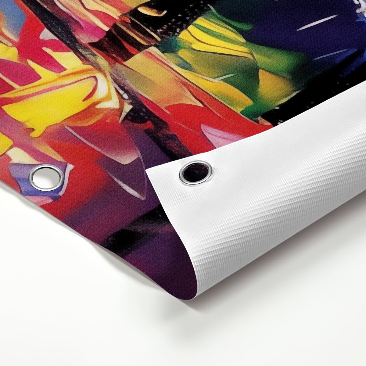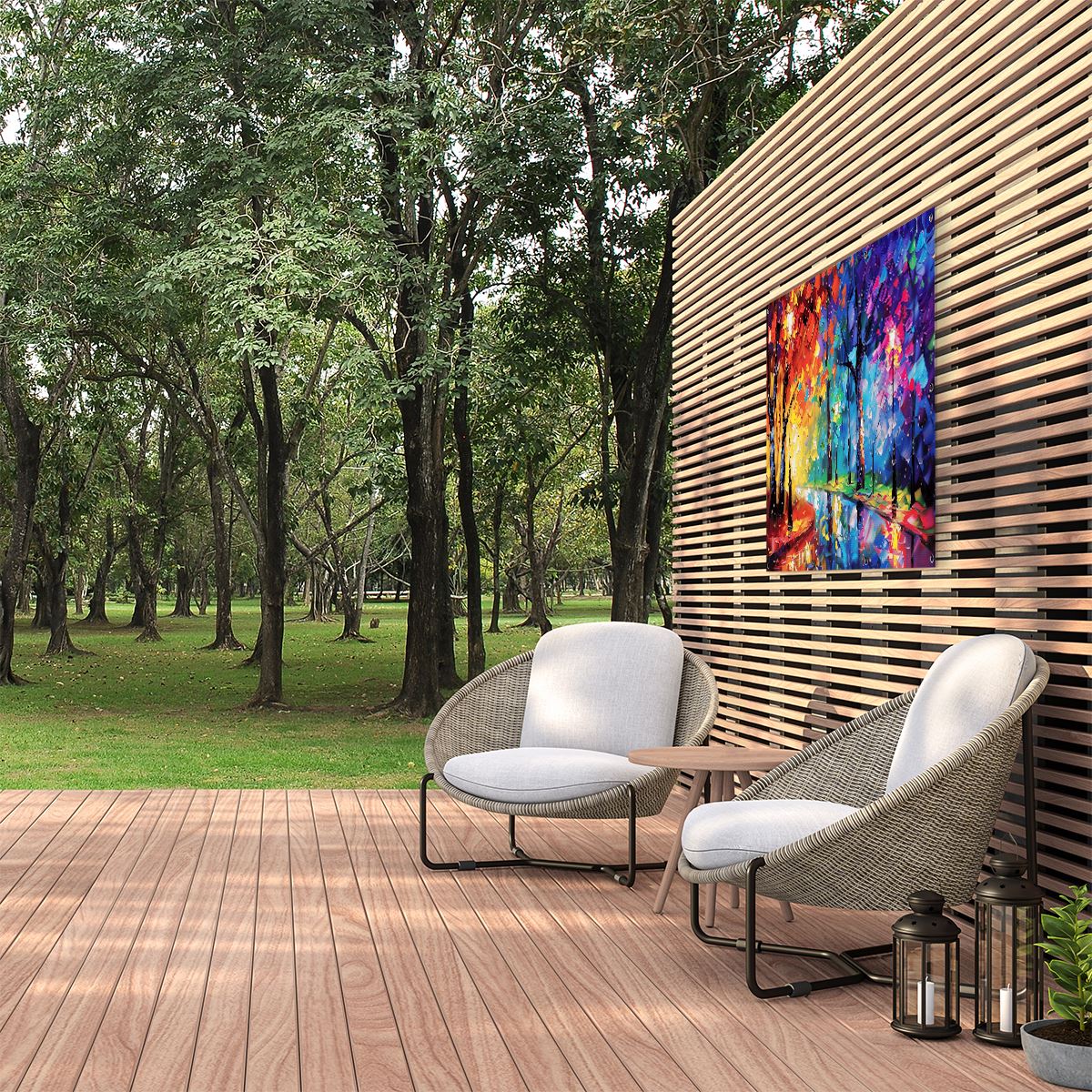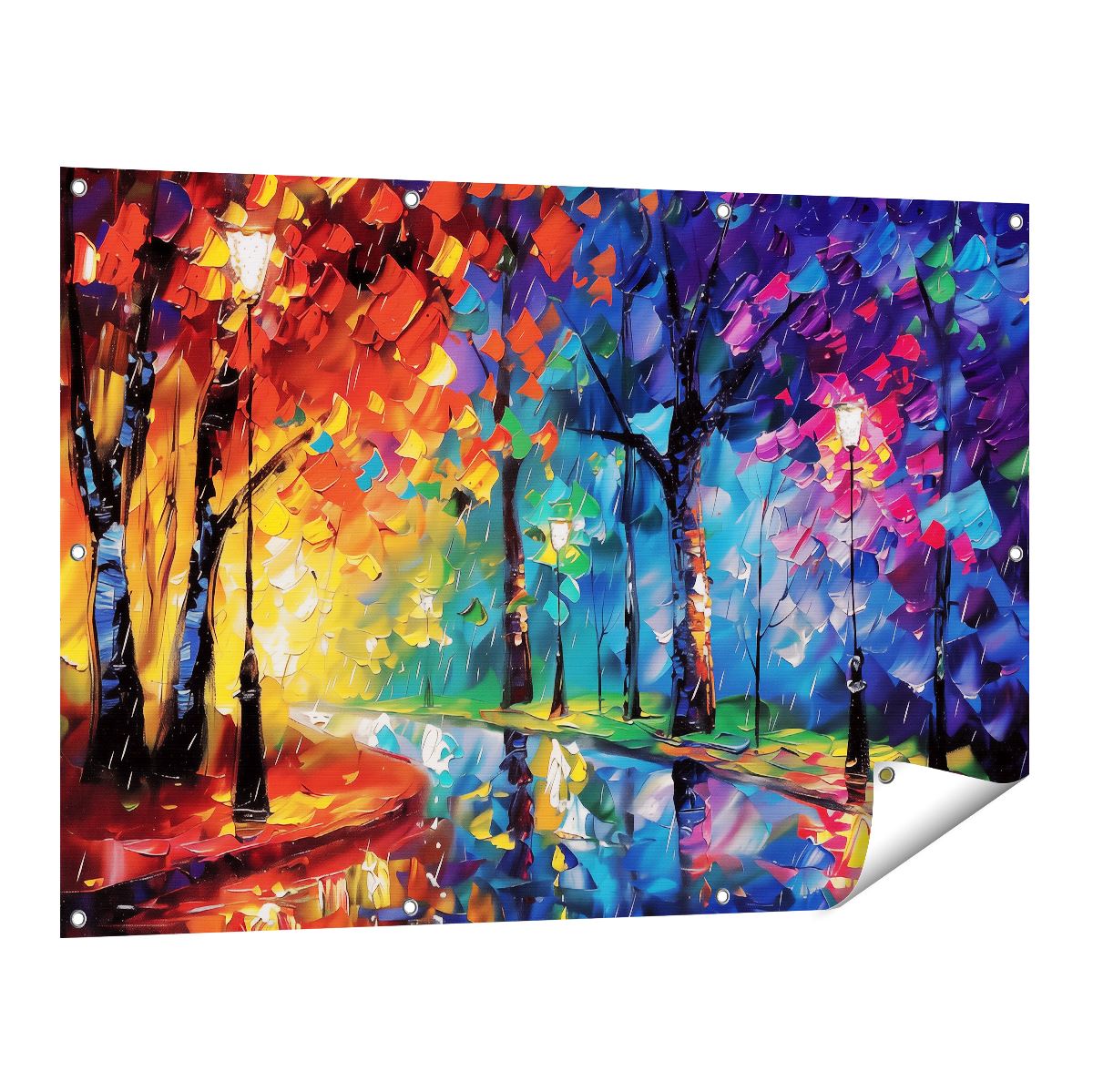 Tuinposter Kleurrijk Kunstwerk van Bomen en Straatverlichting