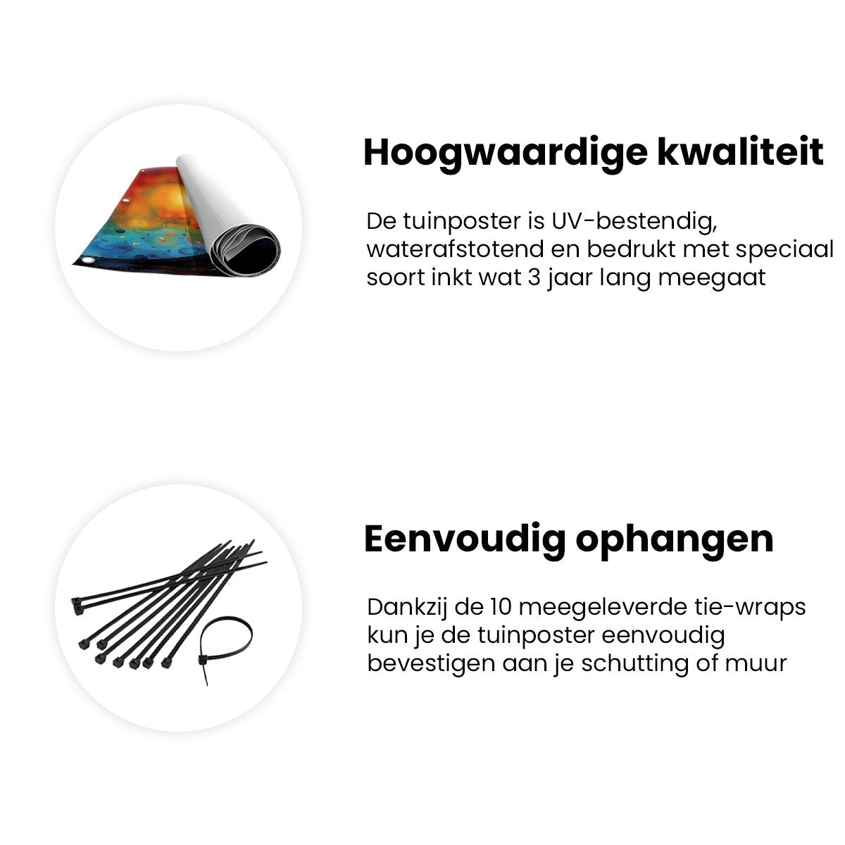 Bij aankoop ontvang je een meegeleverd ophangsysteem, zodat je op een simpele en snelle wijze de tuinposter kan ophangen.