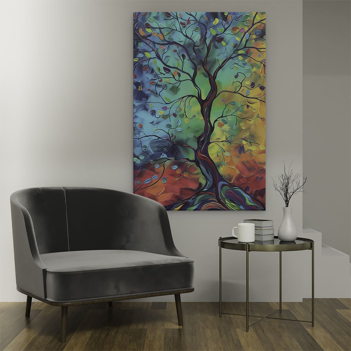 Schilderij Kleurrijk Kunstwerk van een Boom