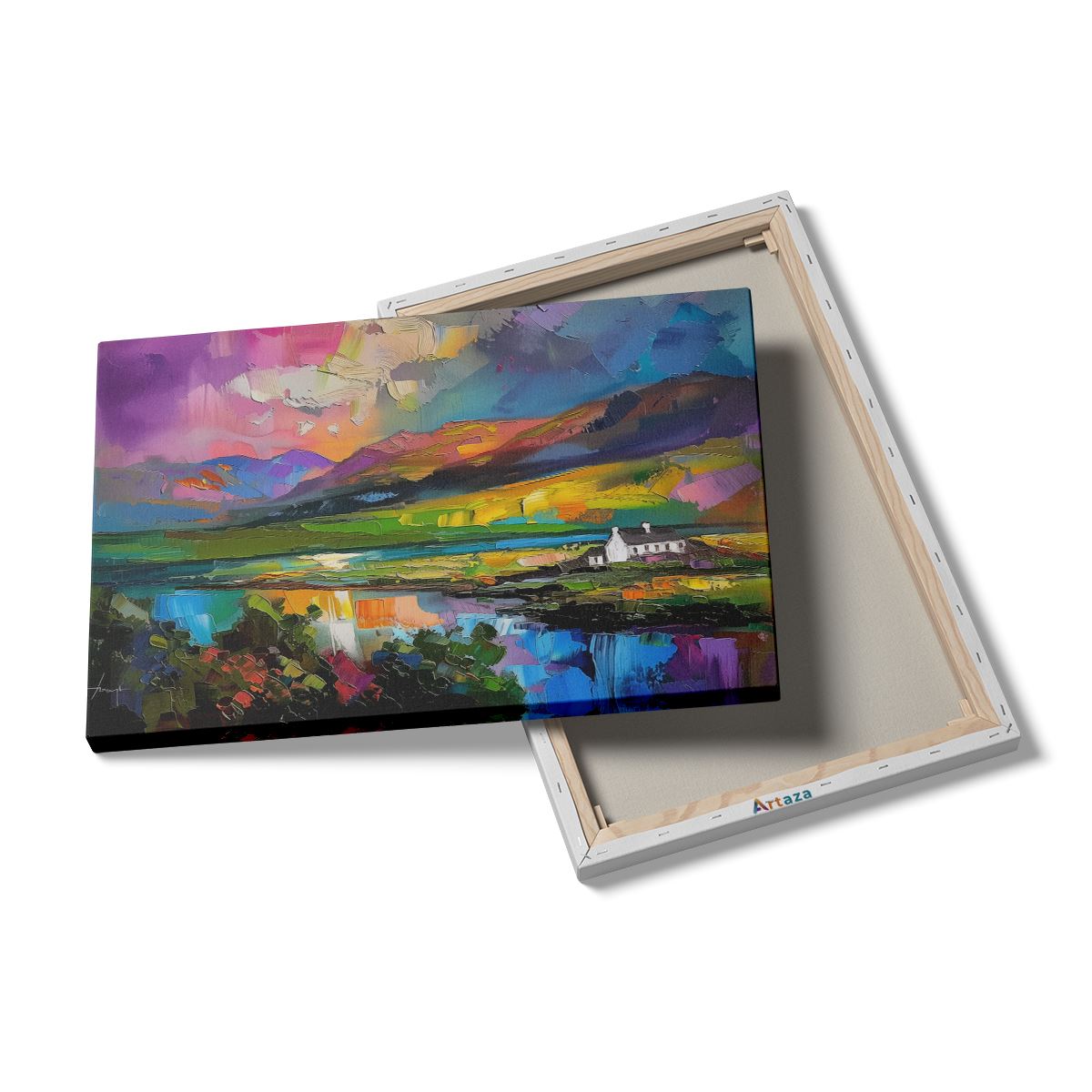 Schilderij Kleurrijk Kunstwerk van een Huis in Schotland