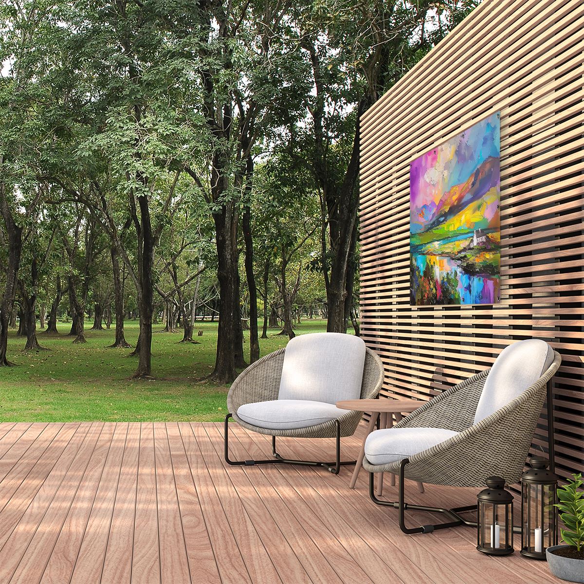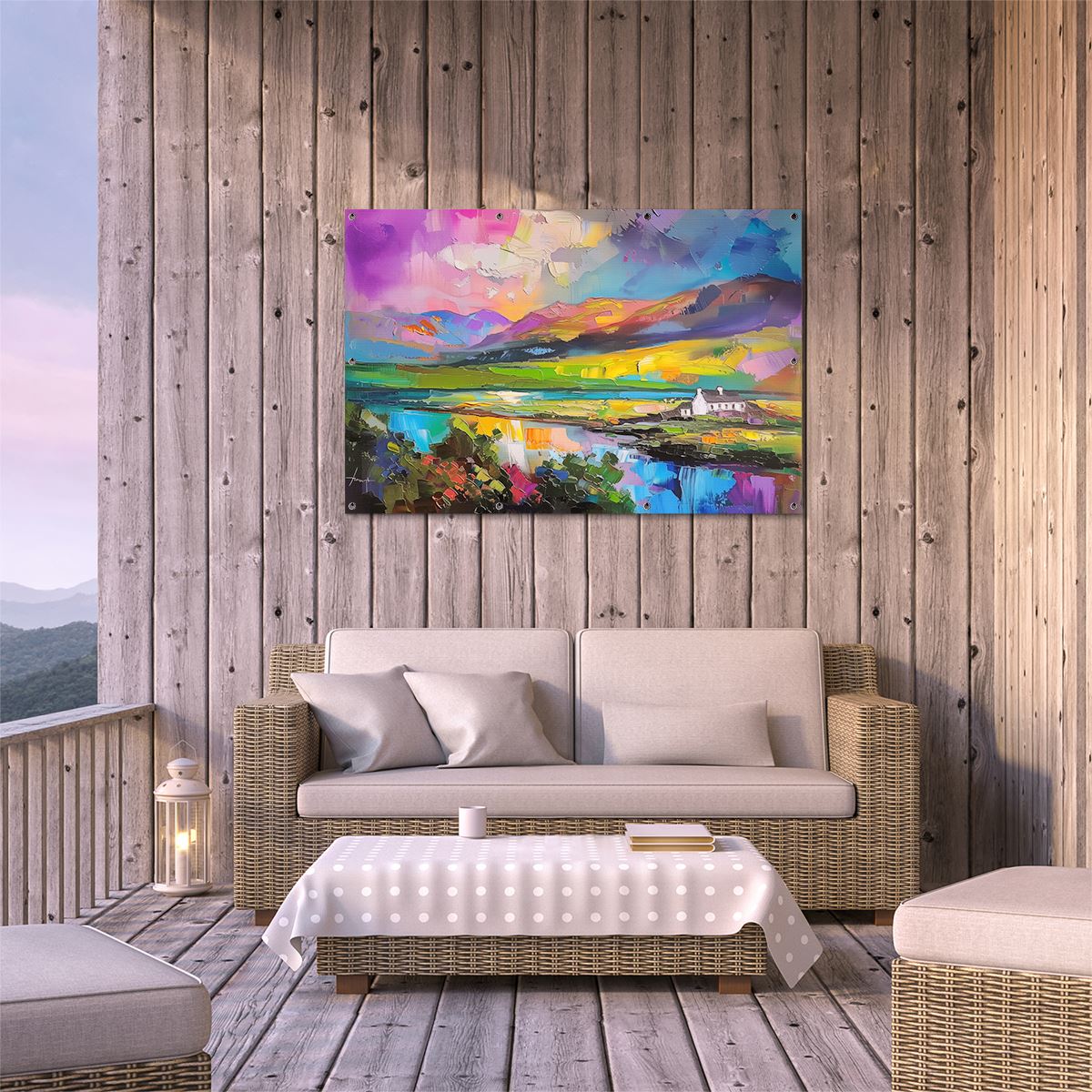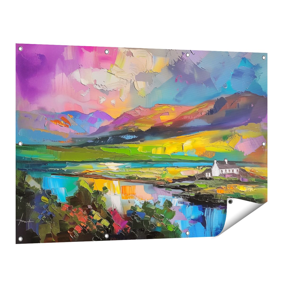Tuinposter Kleurrijk Kunstwerk van een Huis in Schotland