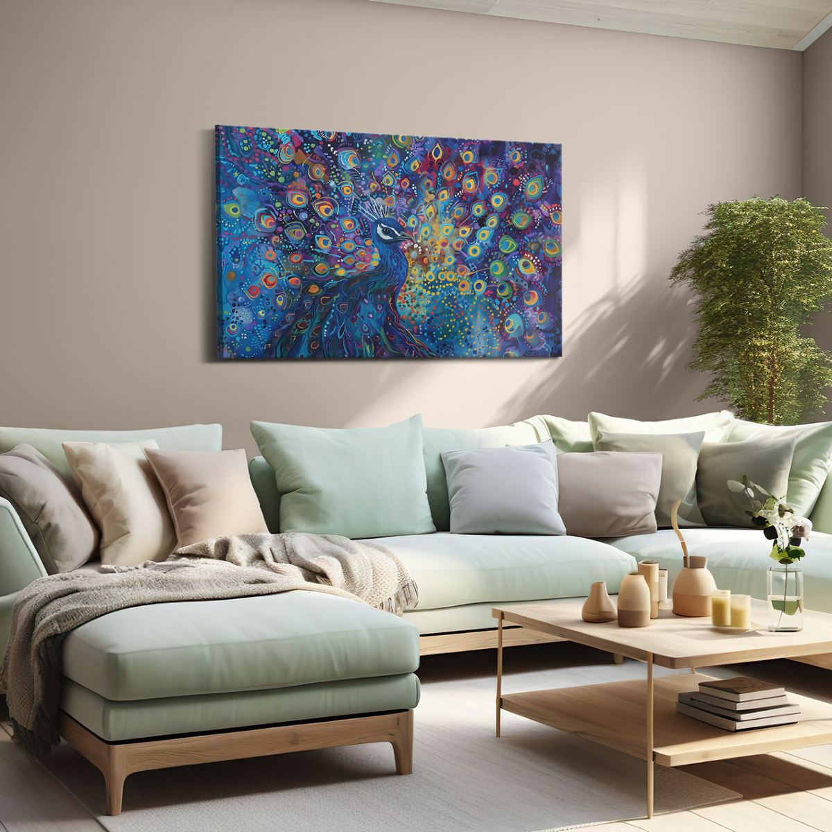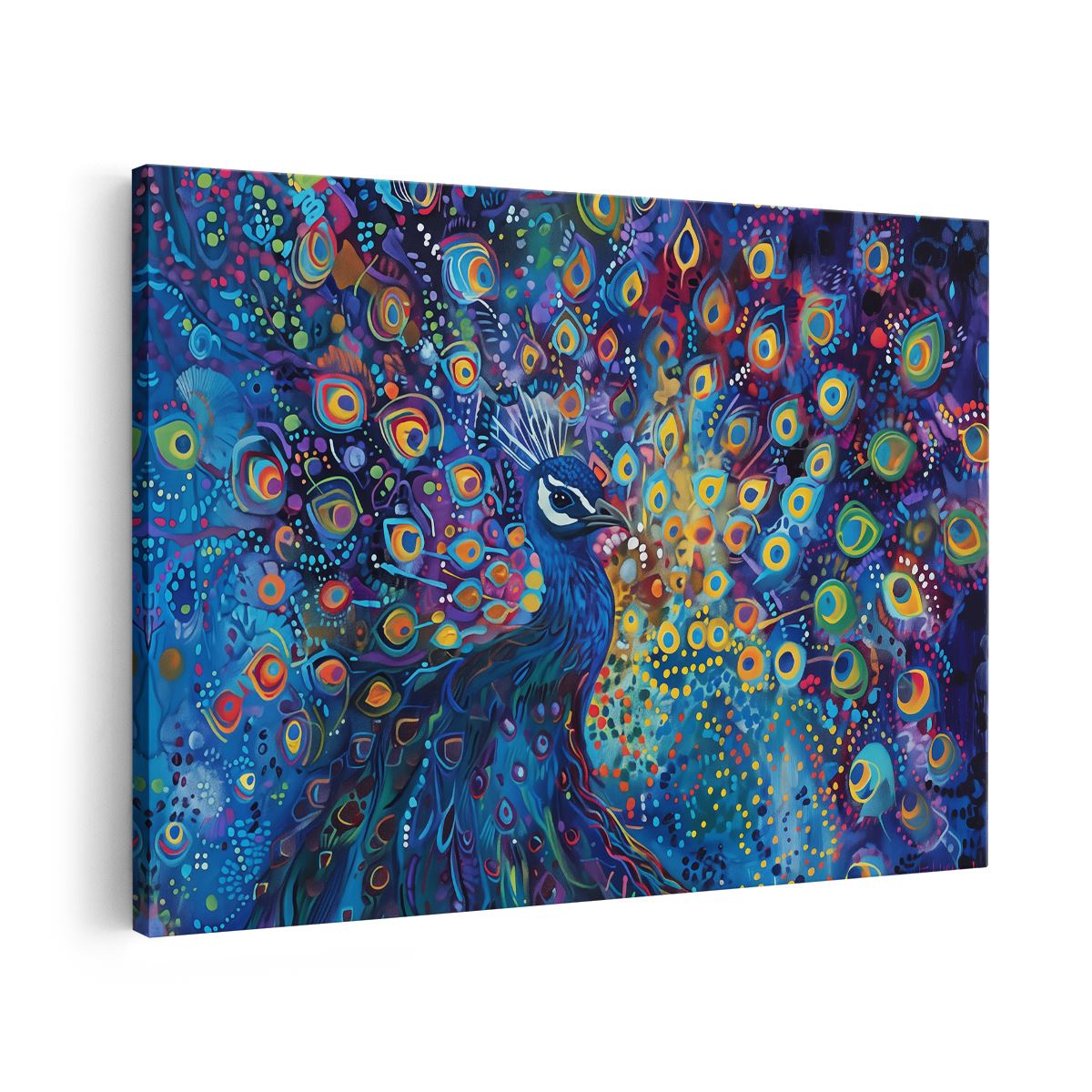 Schilderij Kleurrijk Kunstwerk van een Pauw