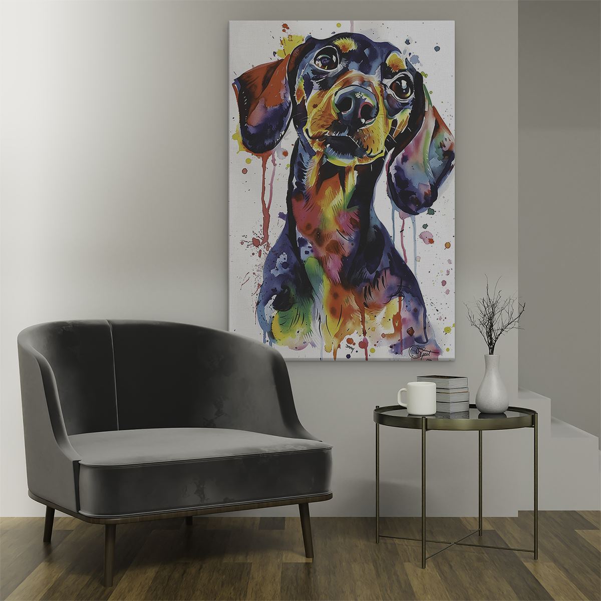 Schilderij Kleurrijk Kunstwerk van een Teckel
