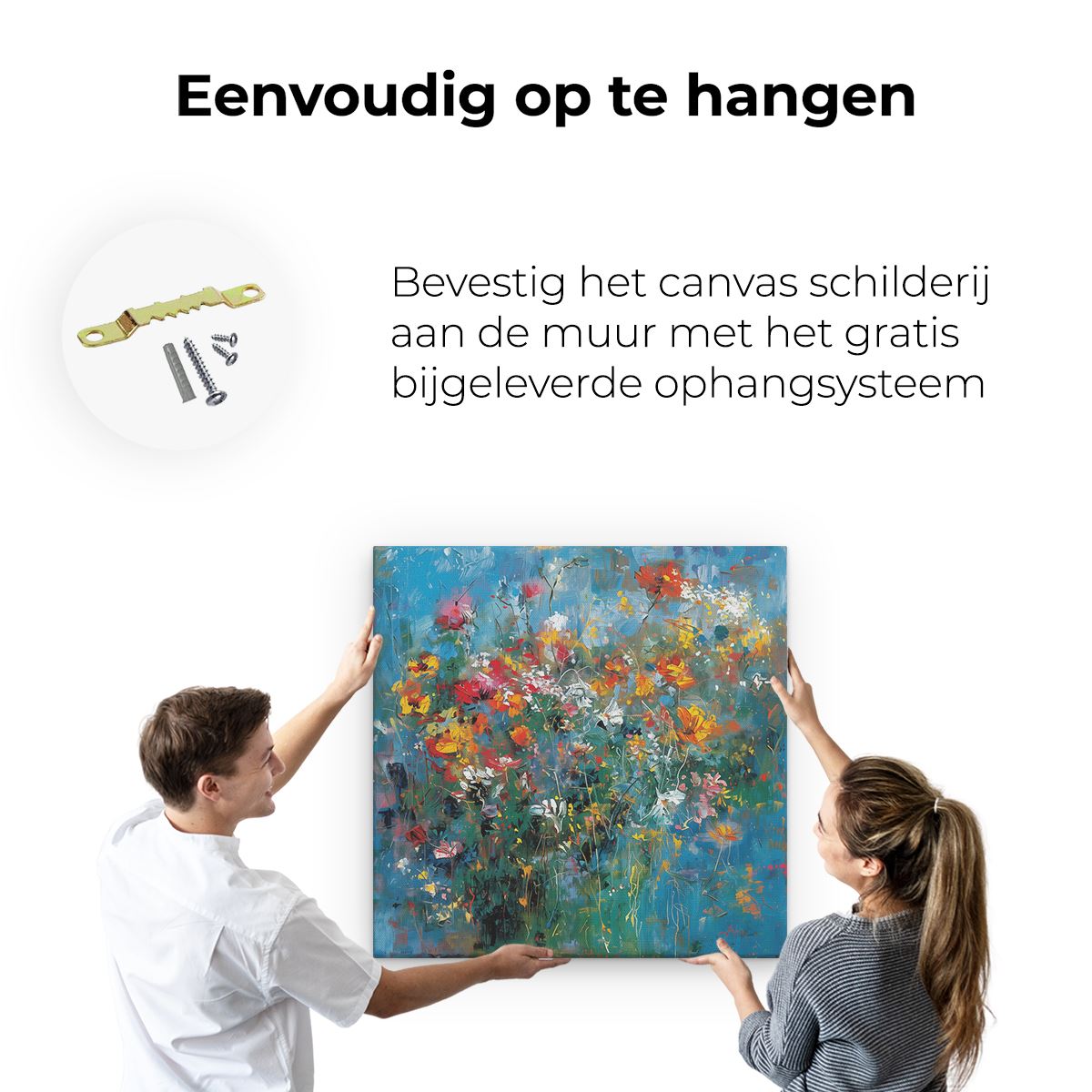 Bij aankoop ontvang je een meegeleverd ophangsysteem, zodat je op een simpele en snelle wijze het schilderij boven de bank of bed kan monteren.