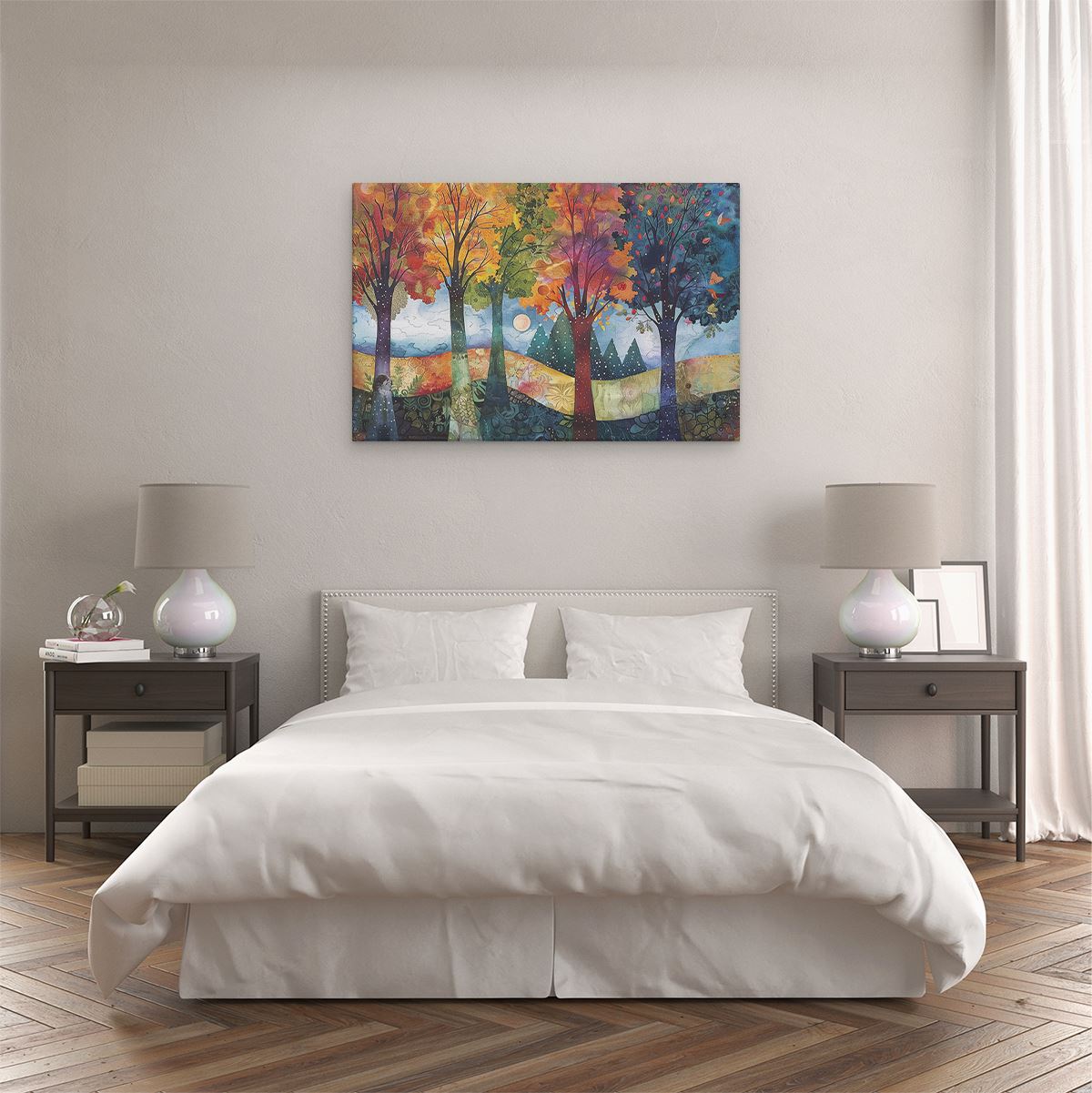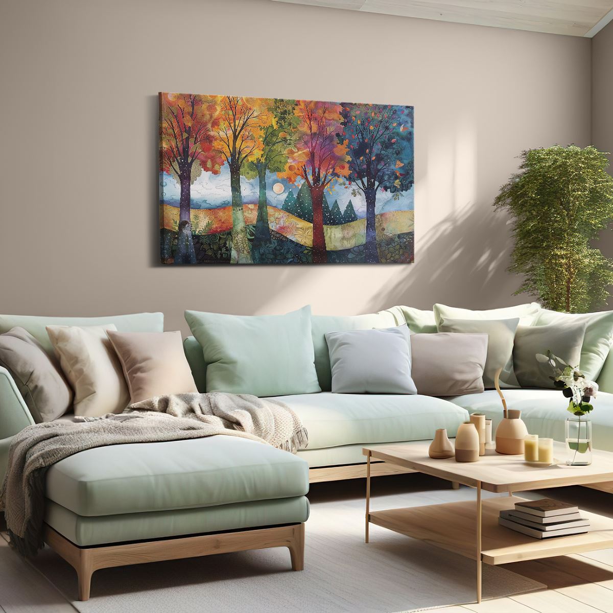 Schilderij Kleurrijke Bomen in een Veld