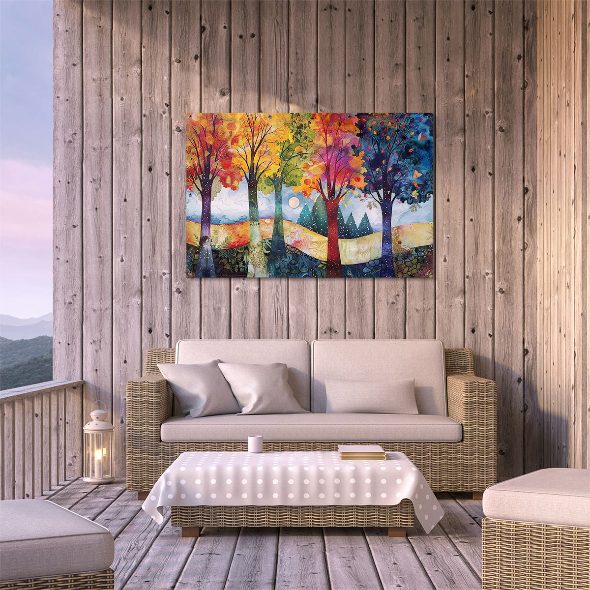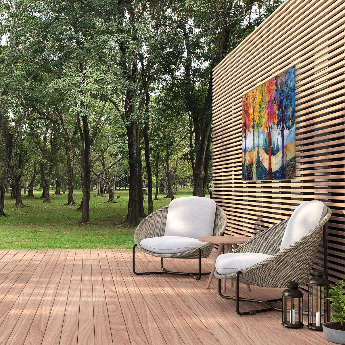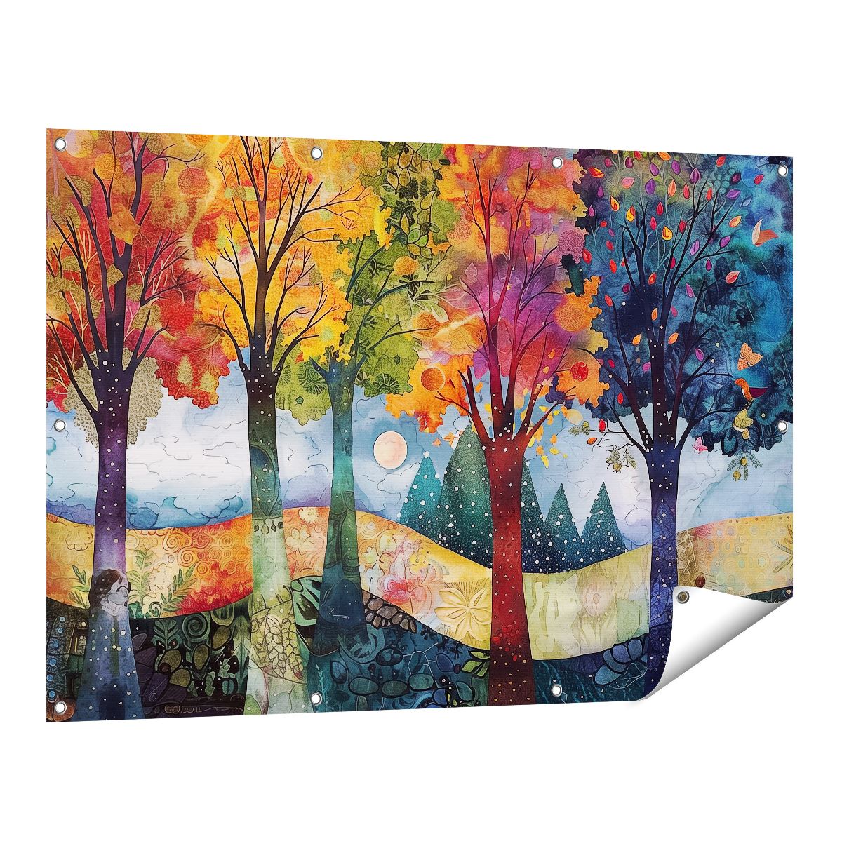 Tuinposter Kleurrijke Bomen in een Veld