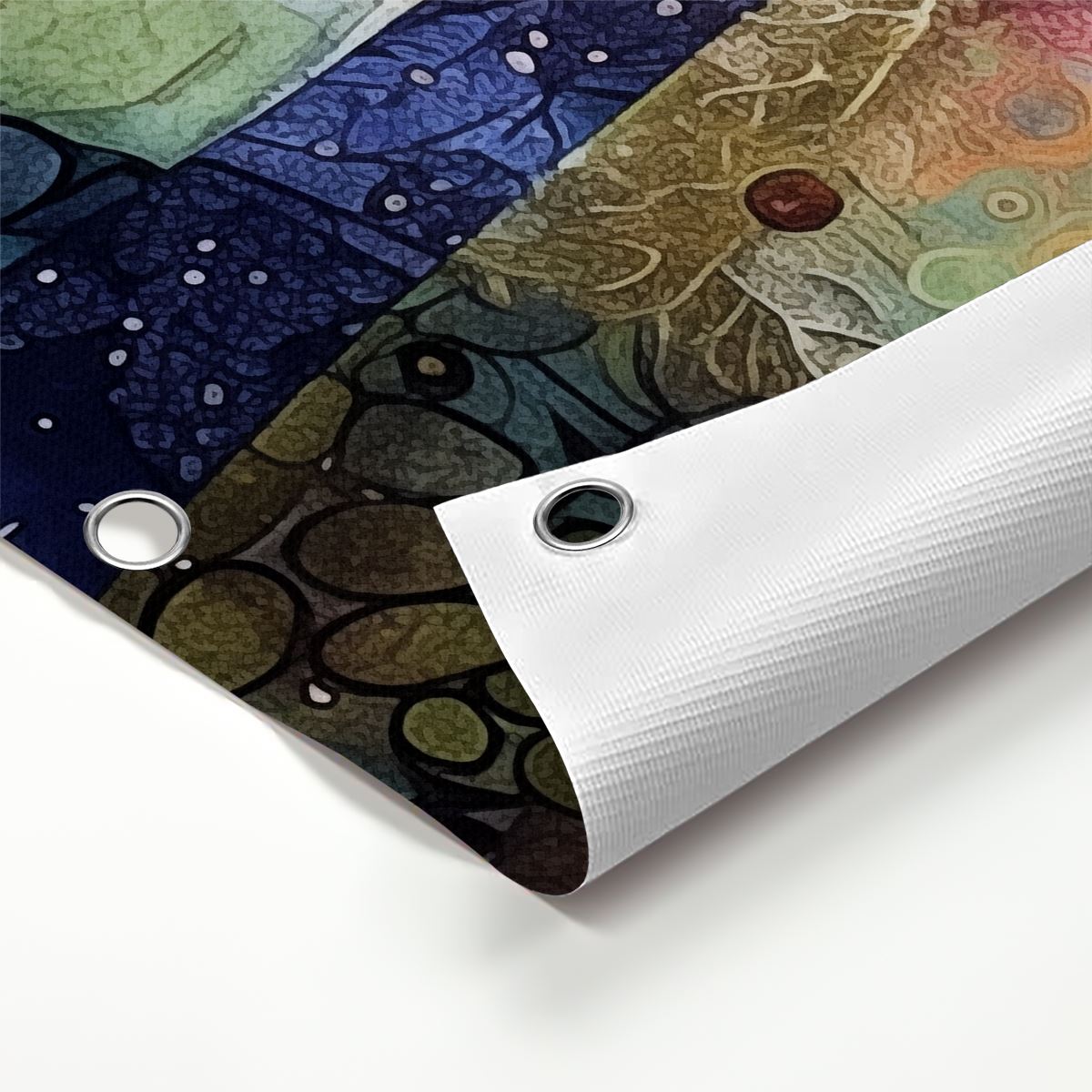 Door de ringen moet je een tiewrap bevestigen, waarmee je de tuinposter aan schroeven aan bijvoorbeeld de schutting kunt bevestigen.