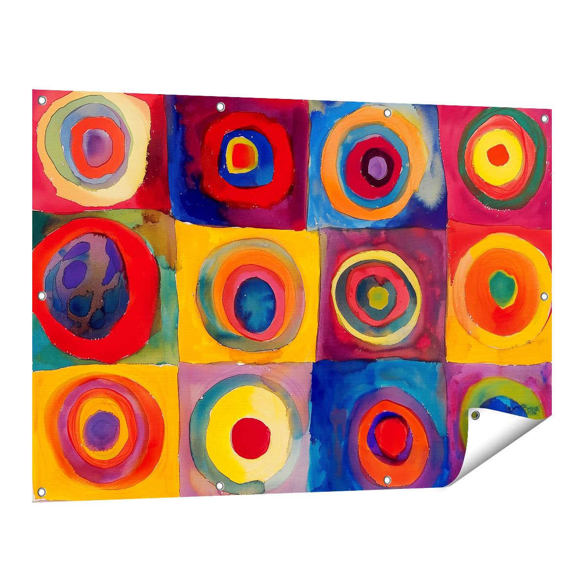 Tuinposter Kleurrijke Cirkels op een Vierkant Canvas