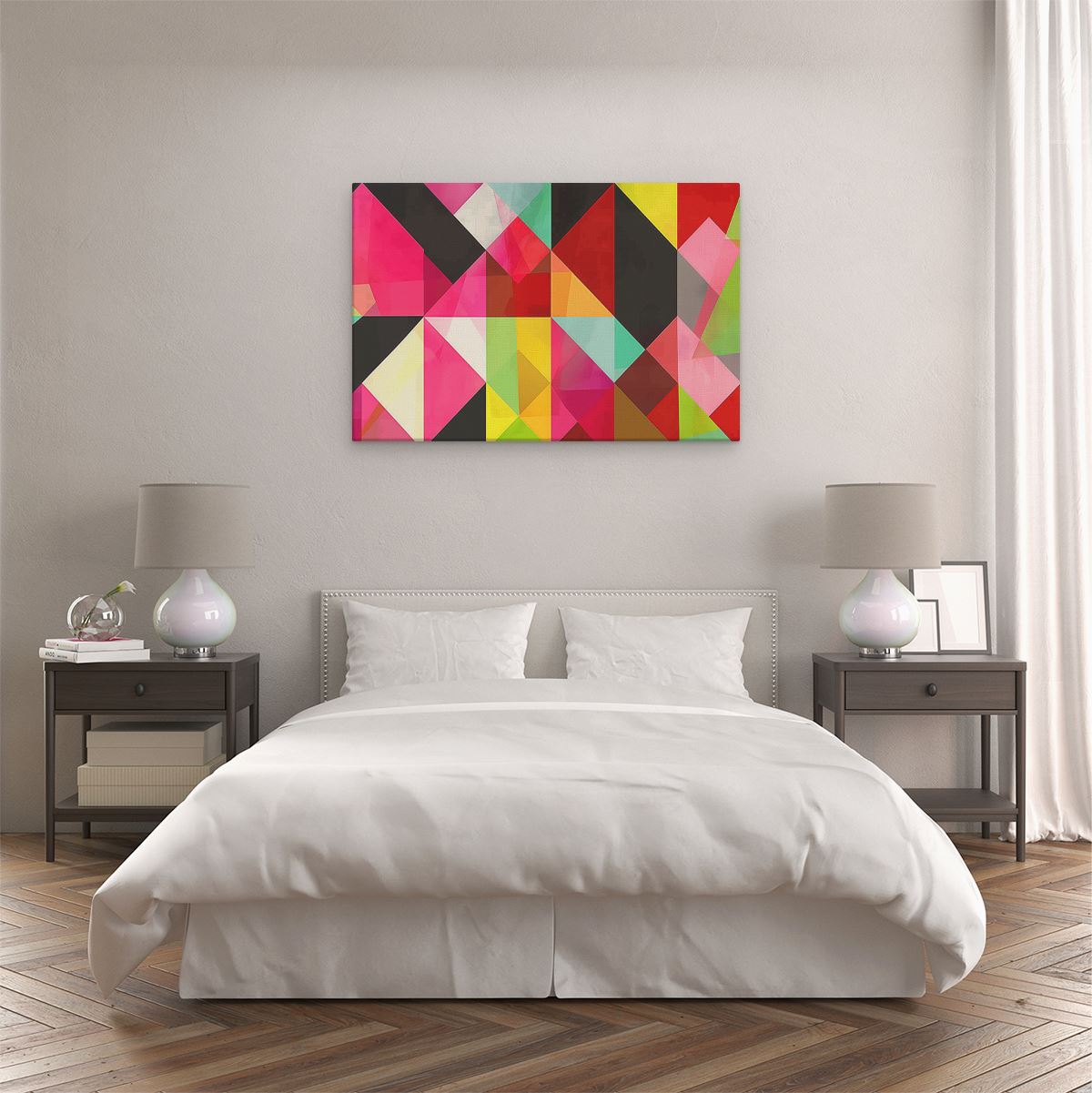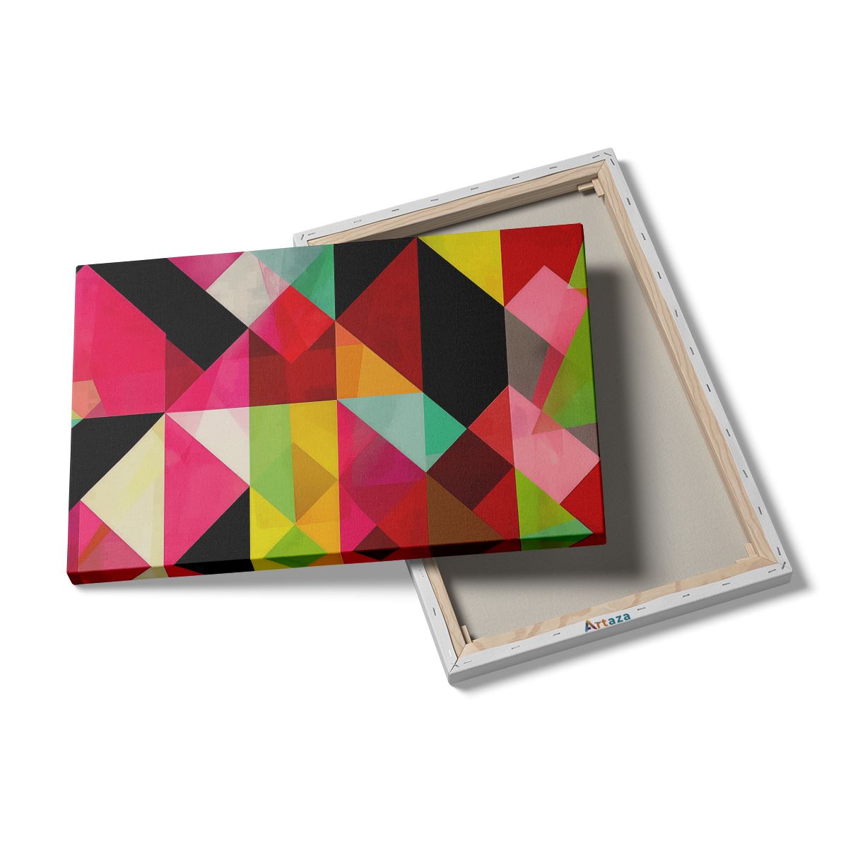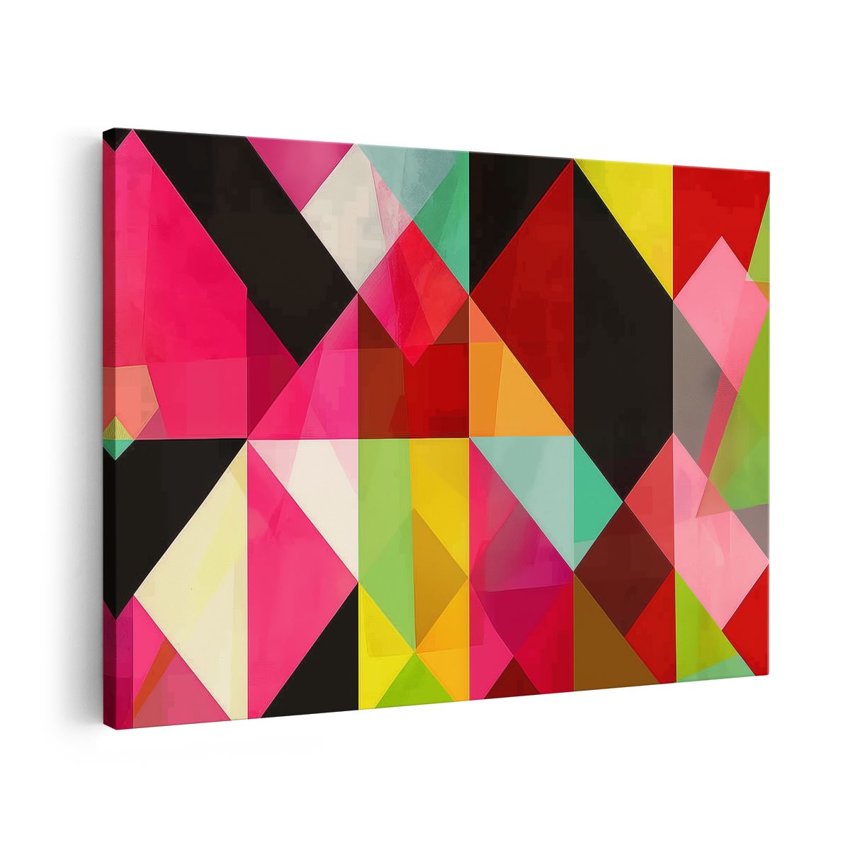 Schilderij Kleurrijke Driehoeken op een Zwarte Achtergrond