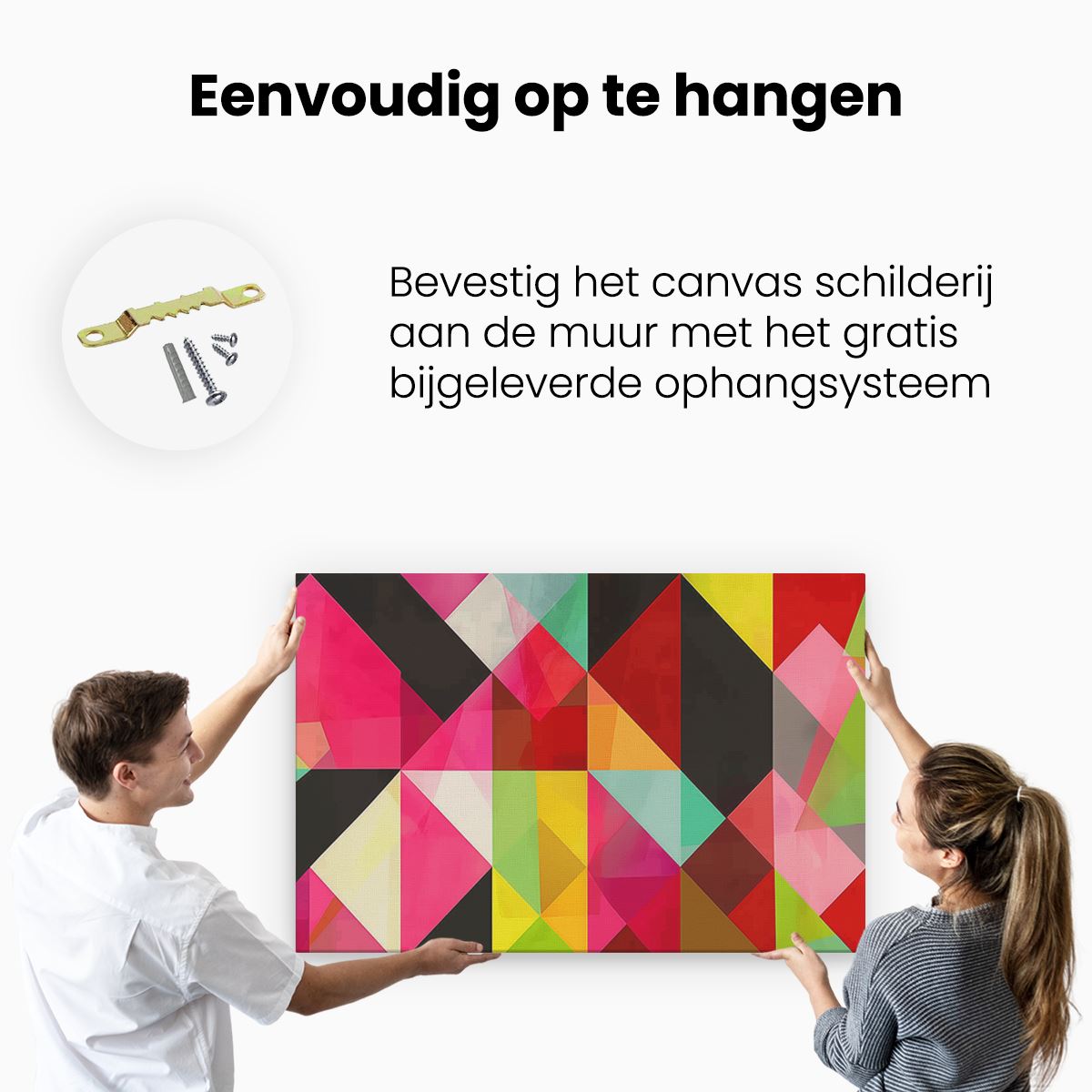 Bij aankoop ontvang je een meegeleverd ophangsysteem, zodat je op een simpele en snelle wijze het schilderij boven de bank of bed kan monteren.