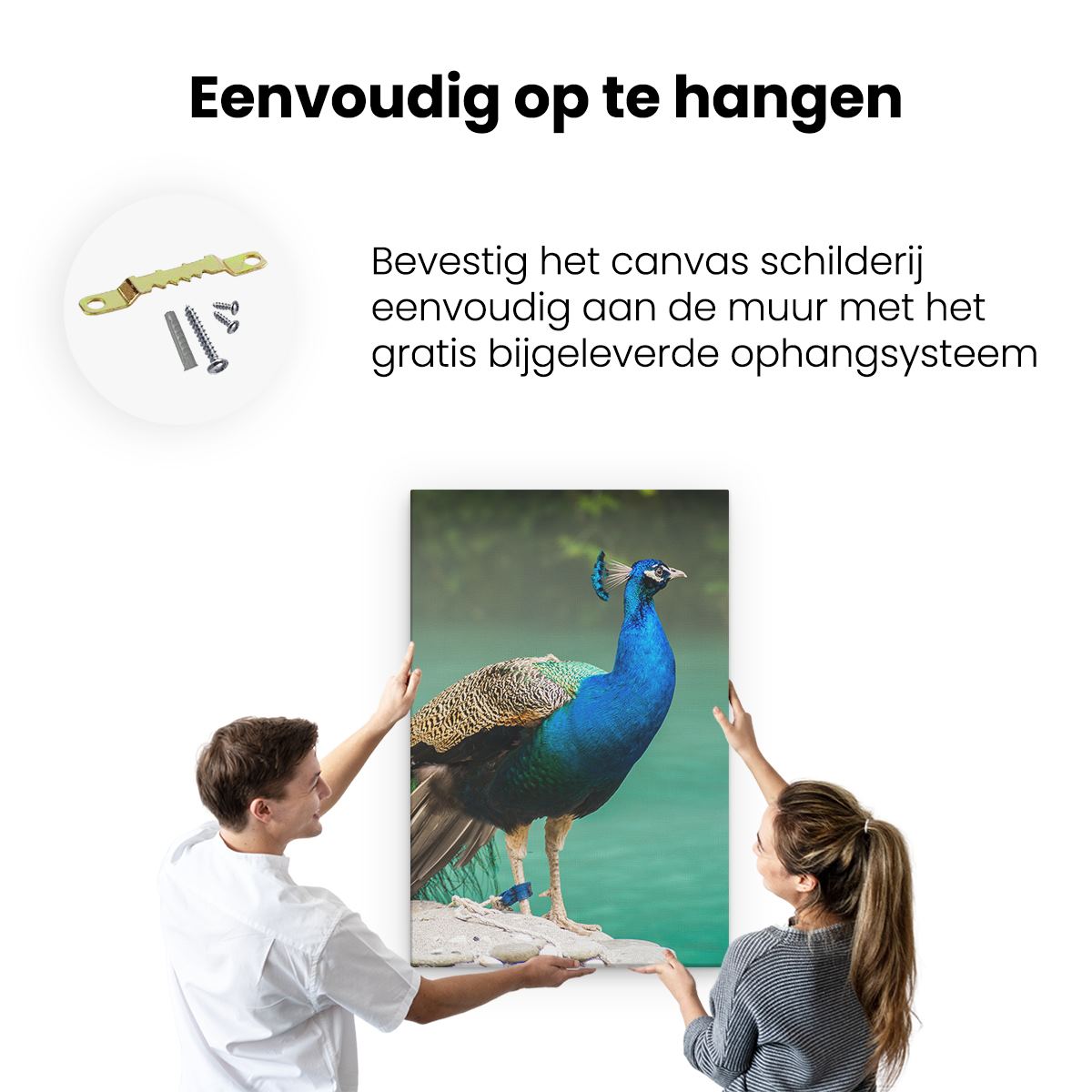 Bij aankoop ontvang je een meegeleverd ophangsysteem, zodat je op een simpele en snelle wijze het schilderij boven de bank of bed kan monteren.
