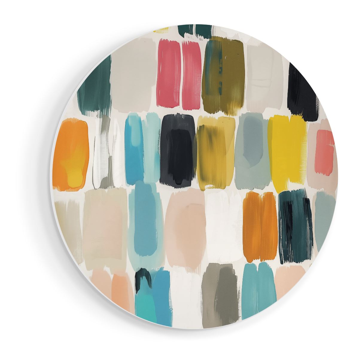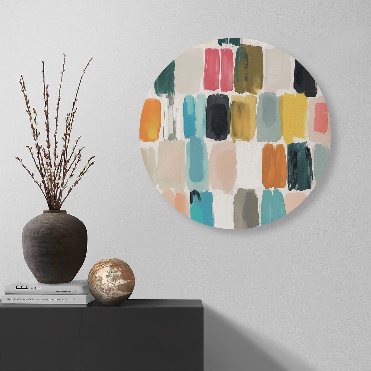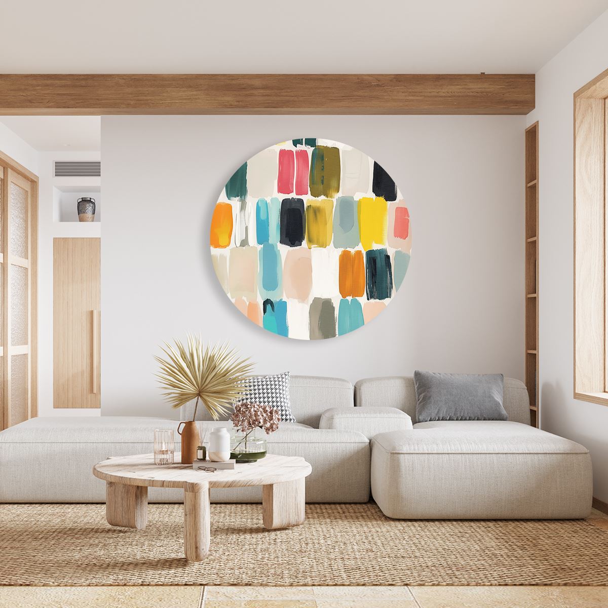 Wandcirkel Kleurrijke Penseelstreken op een Witte Achtergrond