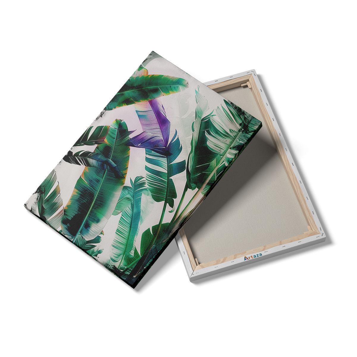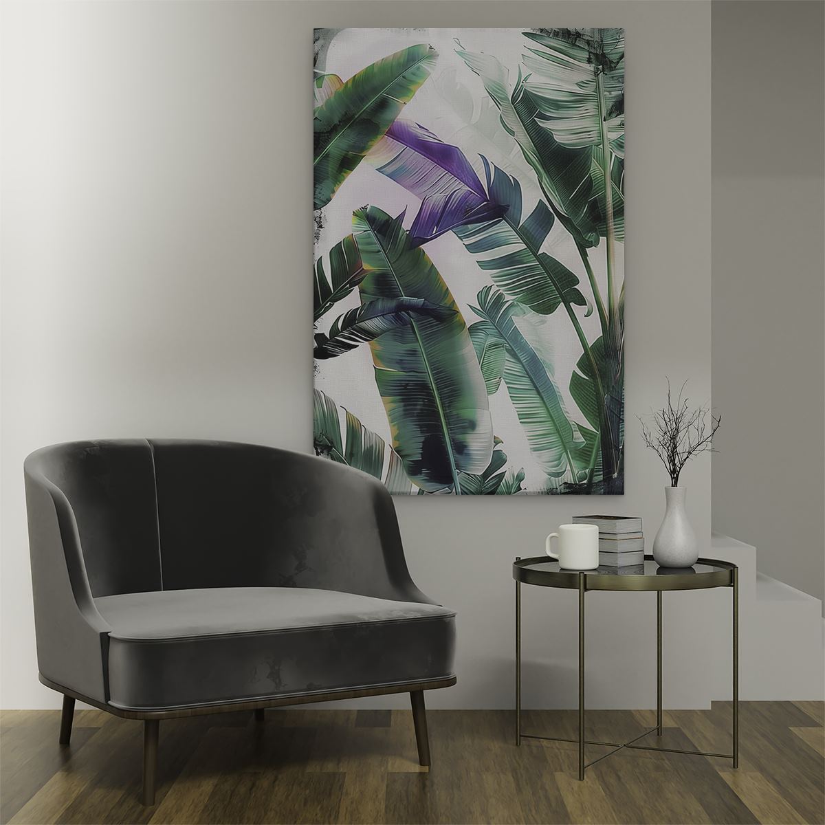 Schilderij Kleurrijke Tropische Bladeren op een Witte Achtergrond