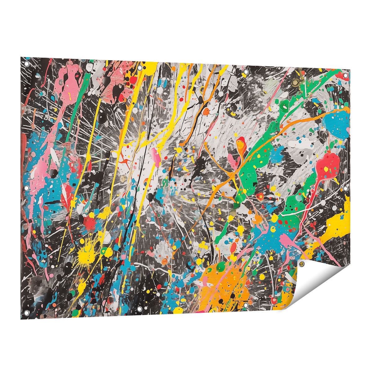 Tuinposter Kleurrijke Verfspatten op een Zwarte Achtergrond