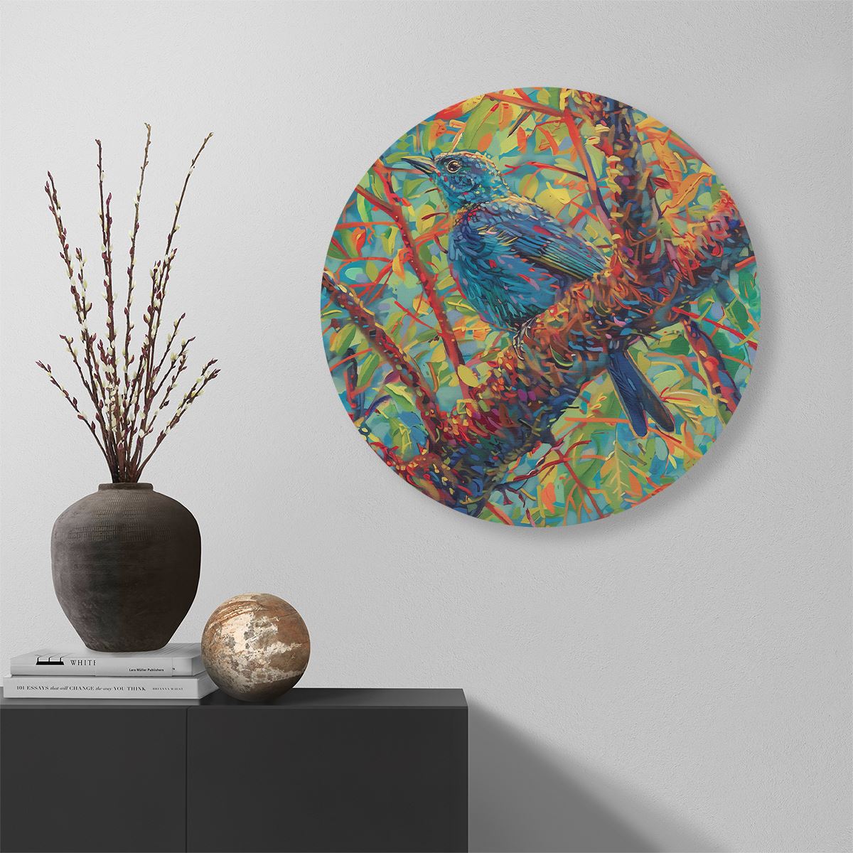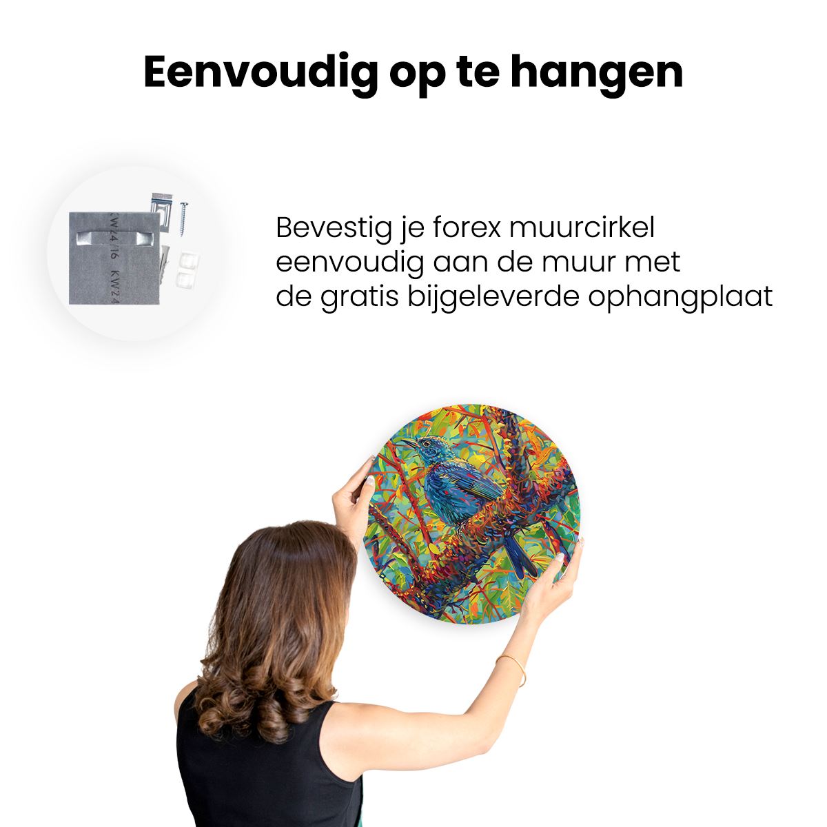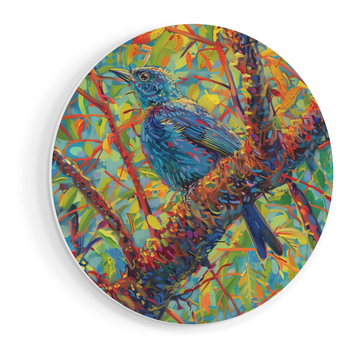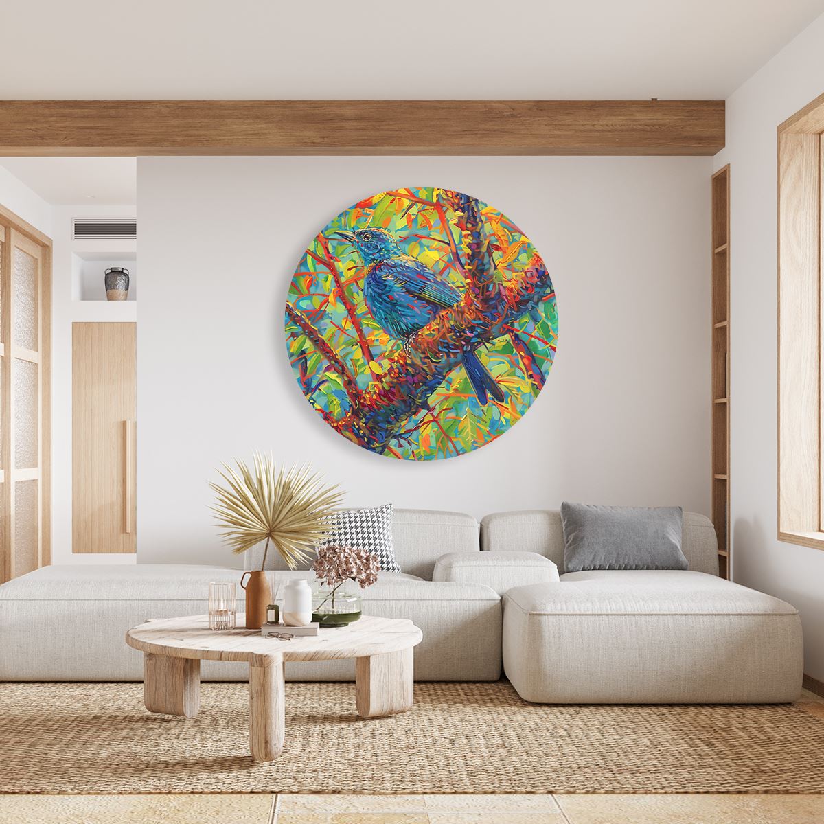 Wandcirkel Kleurrijke Vogel Zat op een Boomtak