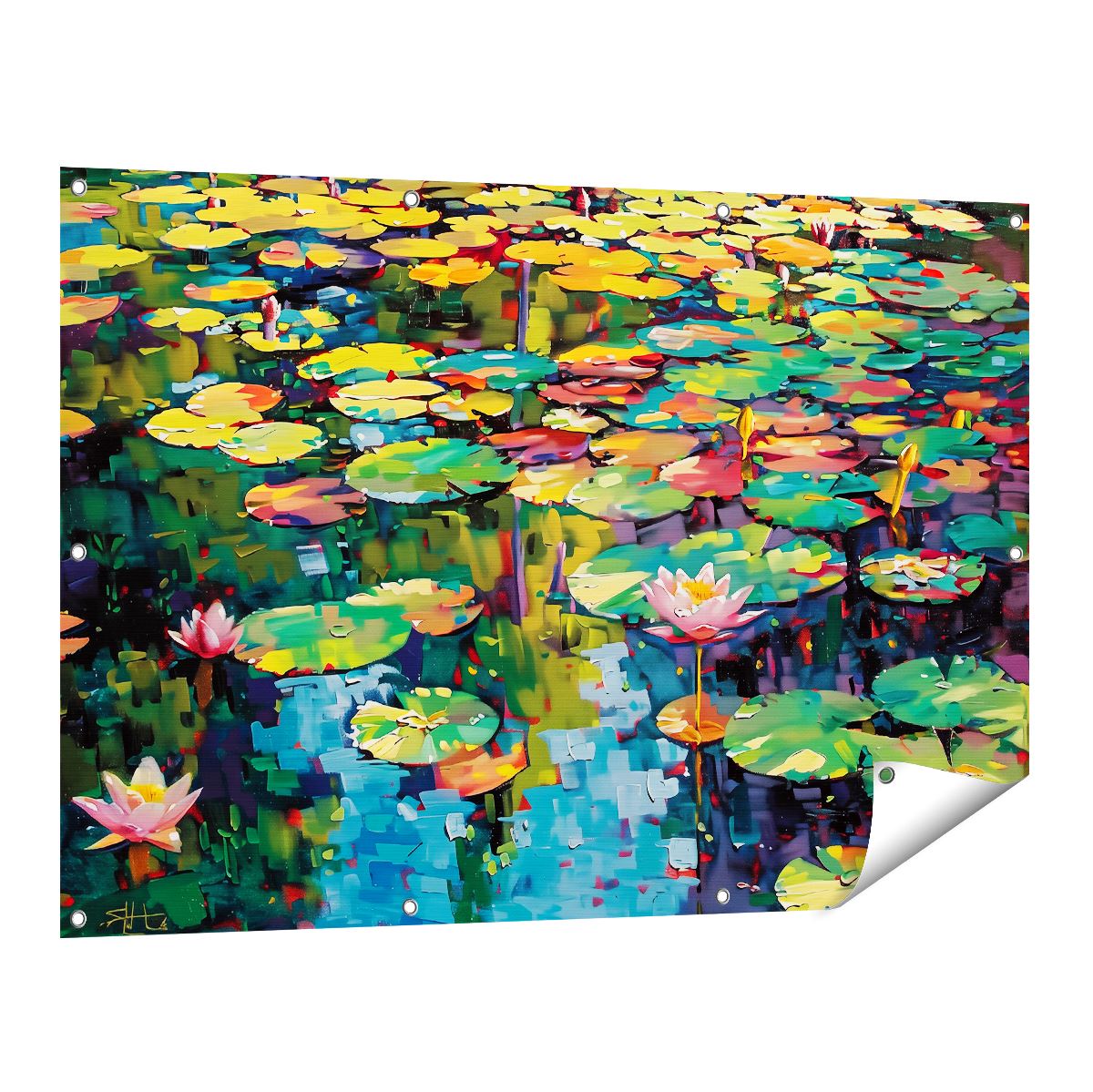 Tuinposter Kleurrijke Waterlelies in een Vijver