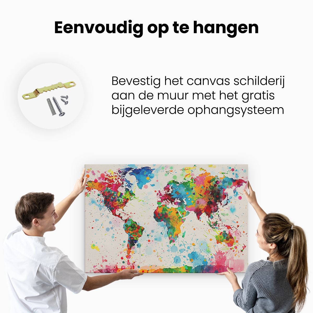 Schilderij Kleurrijke Wereldkaart met Verfspatten