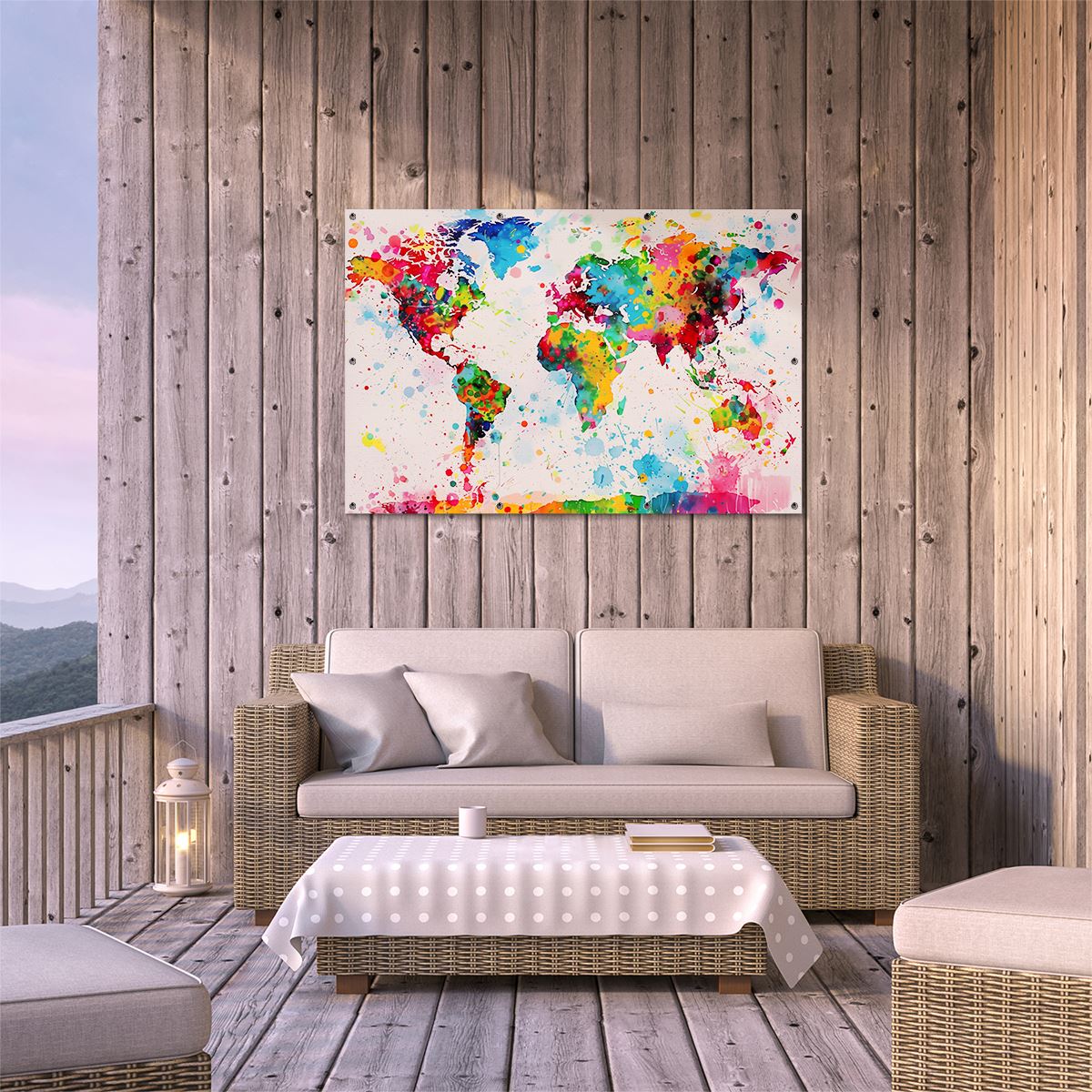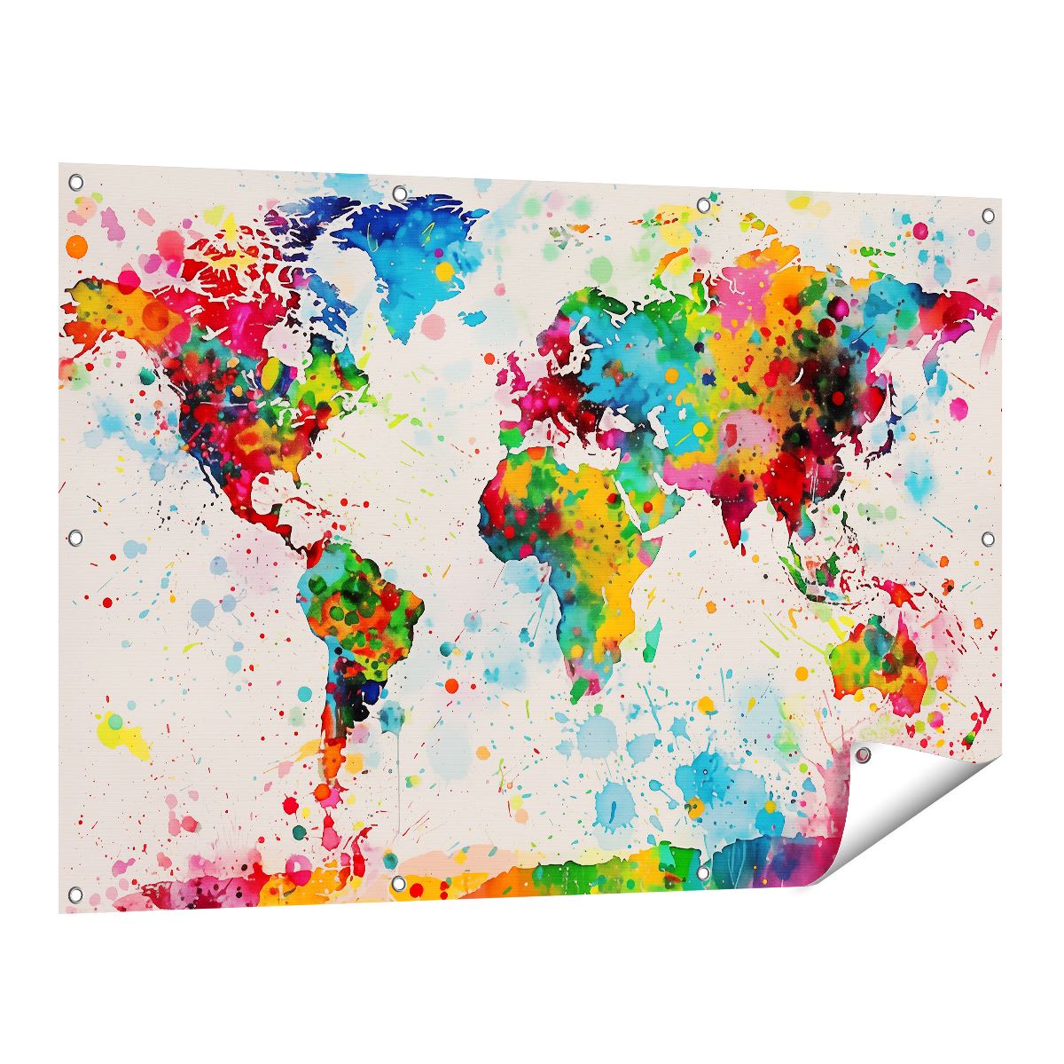 Tuinposter Kleurrijke Wereldkaart met Verfspatten