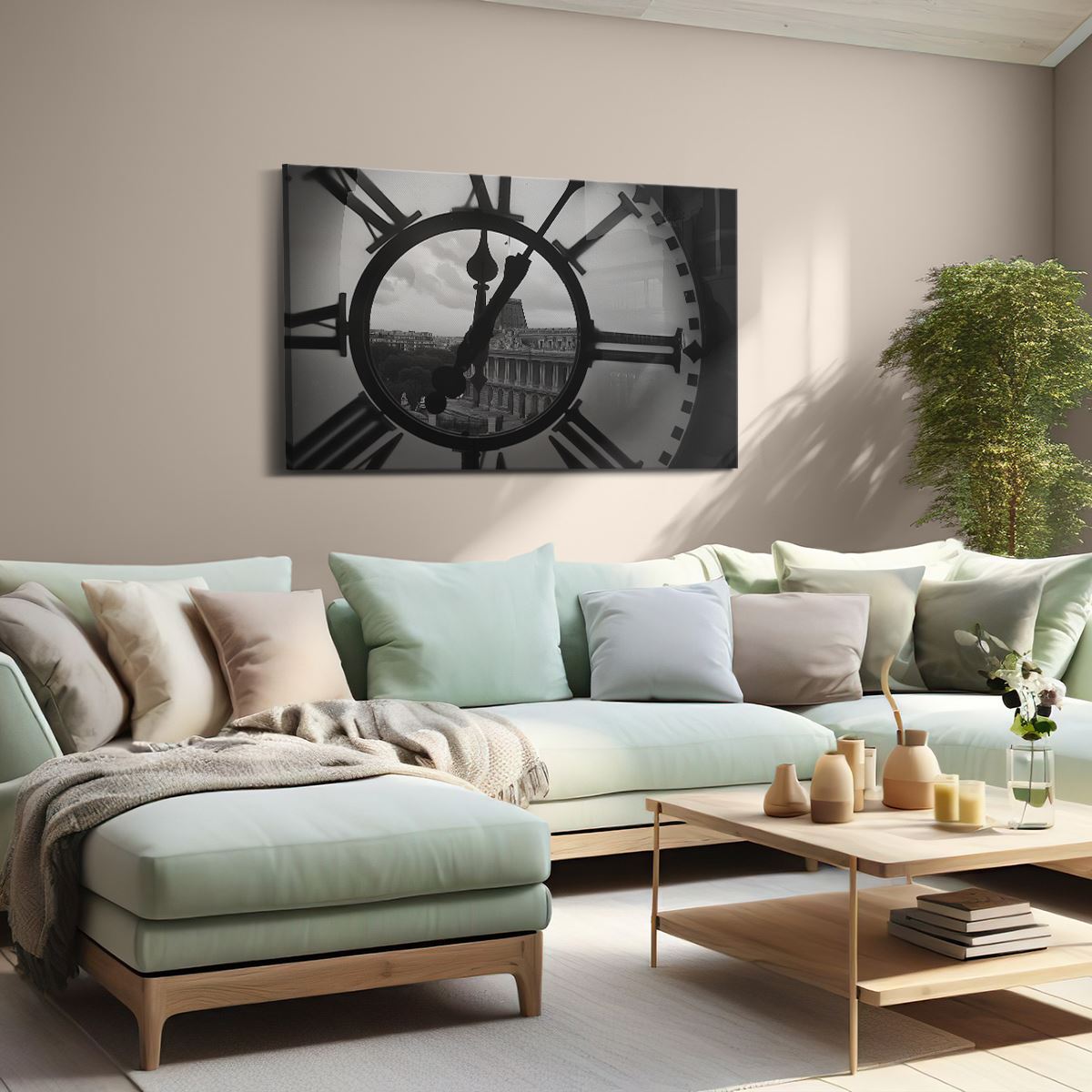Schilderij Klok met een Gebouw op de Achtergrond