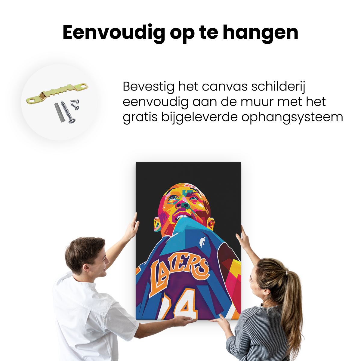 Bij aankoop ontvang je een meegeleverd ophangsysteem, zodat je op een simpele en snelle wijze het schilderij boven de bank of bed kan monteren.